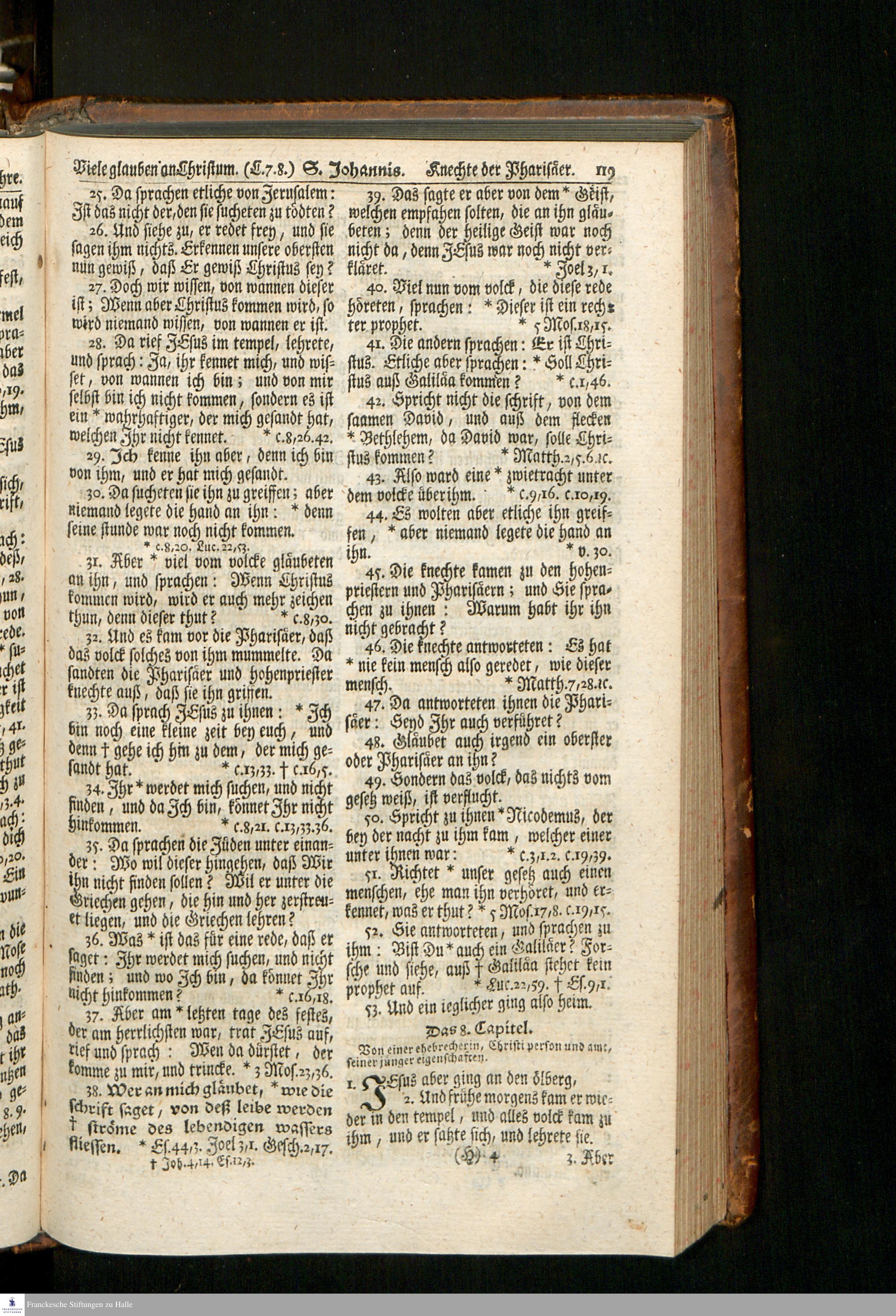 Biblia, Das ist: Die gantze Heil. Schrift Altes und Neues Testaments / Nach der Teutschen Ubersetzung D. Martin Luthers; Mit iedes Capitels kurtzen Summarien, auch beygefügten vielen und richtigen Parallelen; Mit fleiß übersehen/ und gegen einige/ sonderlich erstere/ Editiones des sel. Mannes gehalten, auch an unterschiedlichen Orten nach denselben eingerichtet, und von vielen in den bisherigen Exemplarien hin und wieder eingeschlichenen Fehlern gesaubert. Nebst einer Vorrede Herrn Baron Carl Hildebrands von Canstein