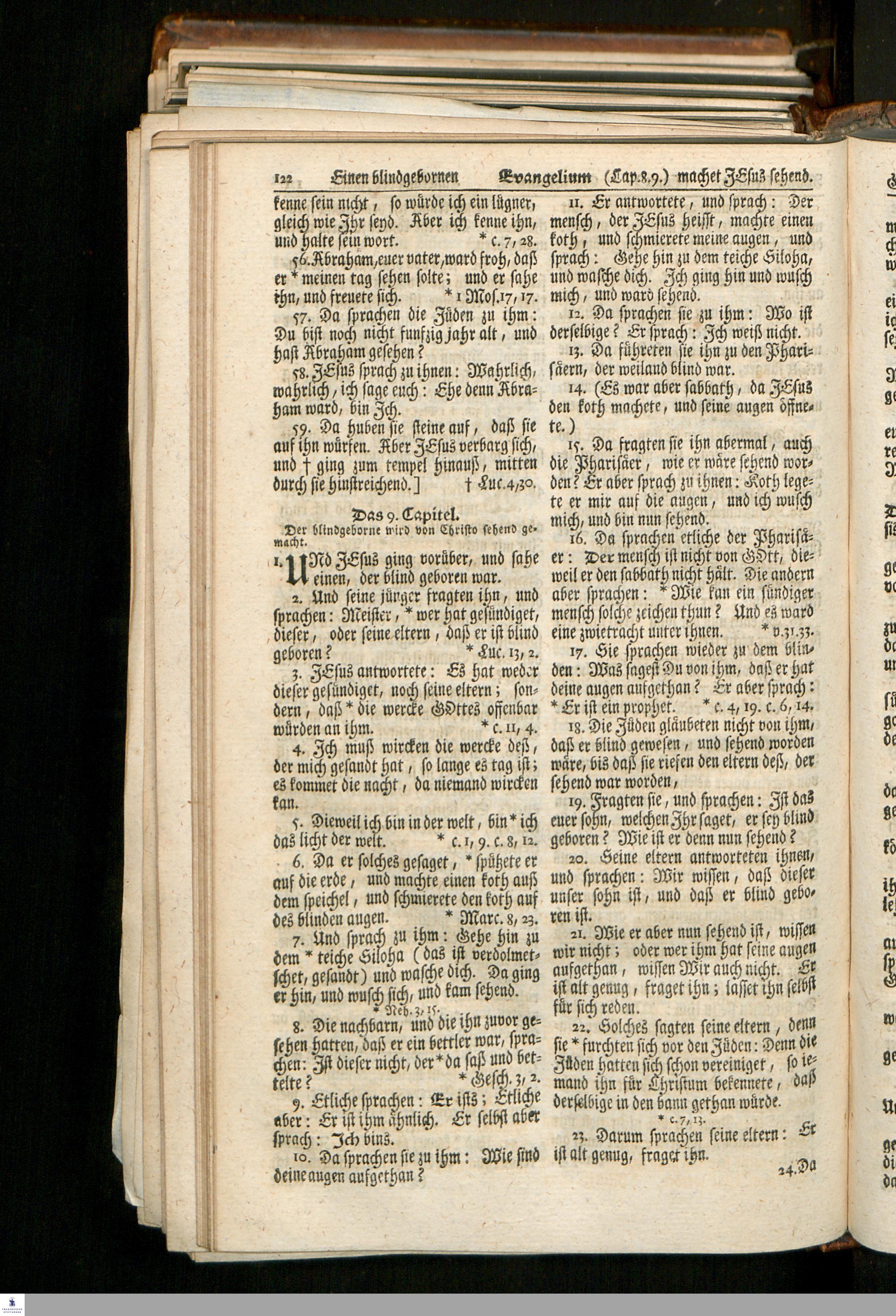 Biblia, Das ist: Die gantze Heil. Schrift Altes und Neues Testaments / Nach der Teutschen Ubersetzung D. Martin Luthers; Mit iedes Capitels kurtzen Summarien, auch beygefügten vielen und richtigen Parallelen; Mit fleiß übersehen/ und gegen einige/ sonderlich erstere/ Editiones des sel. Mannes gehalten, auch an unterschiedlichen Orten nach denselben eingerichtet, und von vielen in den bisherigen Exemplarien hin und wieder eingeschlichenen Fehlern gesaubert. Nebst einer Vorrede Herrn Baron Carl Hildebrands von Canstein
