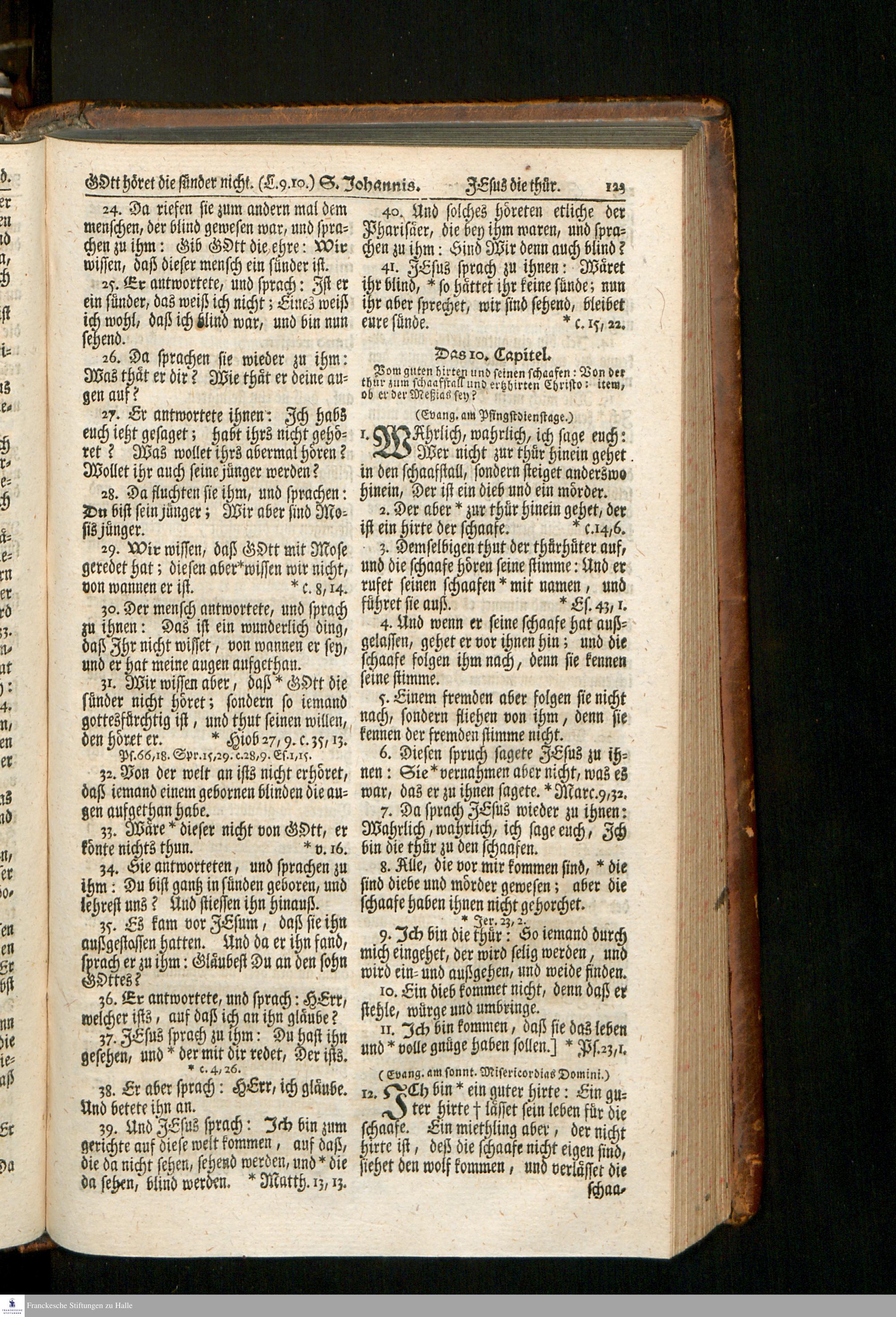 Biblia, Das ist: Die gantze Heil. Schrift Altes und Neues Testaments / Nach der Teutschen Ubersetzung D. Martin Luthers; Mit iedes Capitels kurtzen Summarien, auch beygefügten vielen und richtigen Parallelen; Mit fleiß übersehen/ und gegen einige/ sonderlich erstere/ Editiones des sel. Mannes gehalten, auch an unterschiedlichen Orten nach denselben eingerichtet, und von vielen in den bisherigen Exemplarien hin und wieder eingeschlichenen Fehlern gesaubert. Nebst einer Vorrede Herrn Baron Carl Hildebrands von Canstein