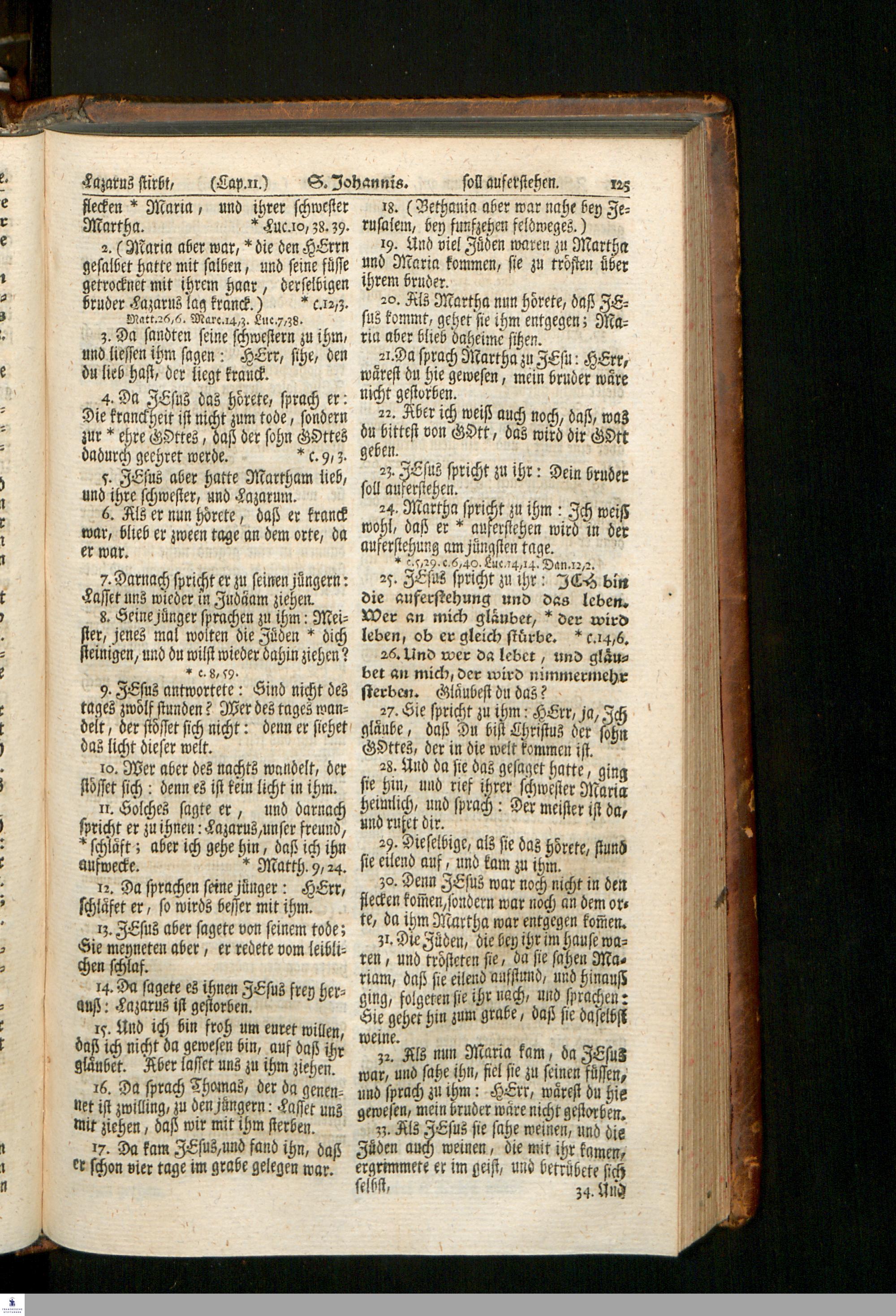 Biblia, Das ist: Die gantze Heil. Schrift Altes und Neues Testaments / Nach der Teutschen Ubersetzung D. Martin Luthers; Mit iedes Capitels kurtzen Summarien, auch beygefügten vielen und richtigen Parallelen; Mit fleiß übersehen/ und gegen einige/ sonderlich erstere/ Editiones des sel. Mannes gehalten, auch an unterschiedlichen Orten nach denselben eingerichtet, und von vielen in den bisherigen Exemplarien hin und wieder eingeschlichenen Fehlern gesaubert. Nebst einer Vorrede Herrn Baron Carl Hildebrands von Canstein