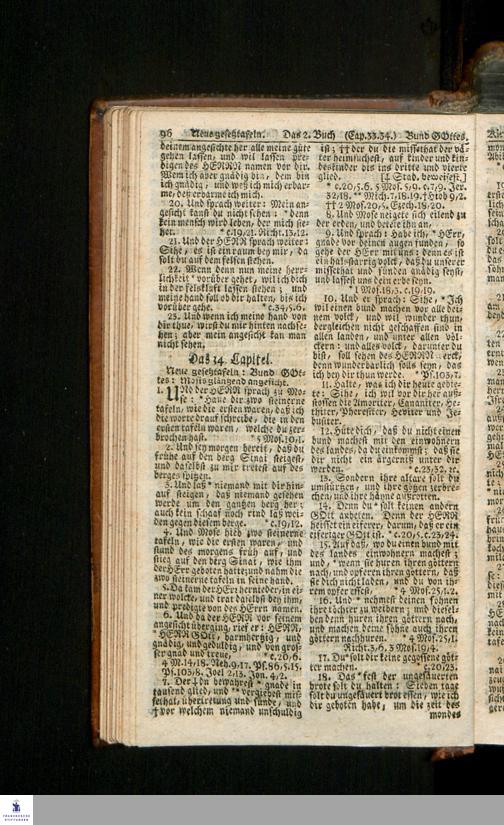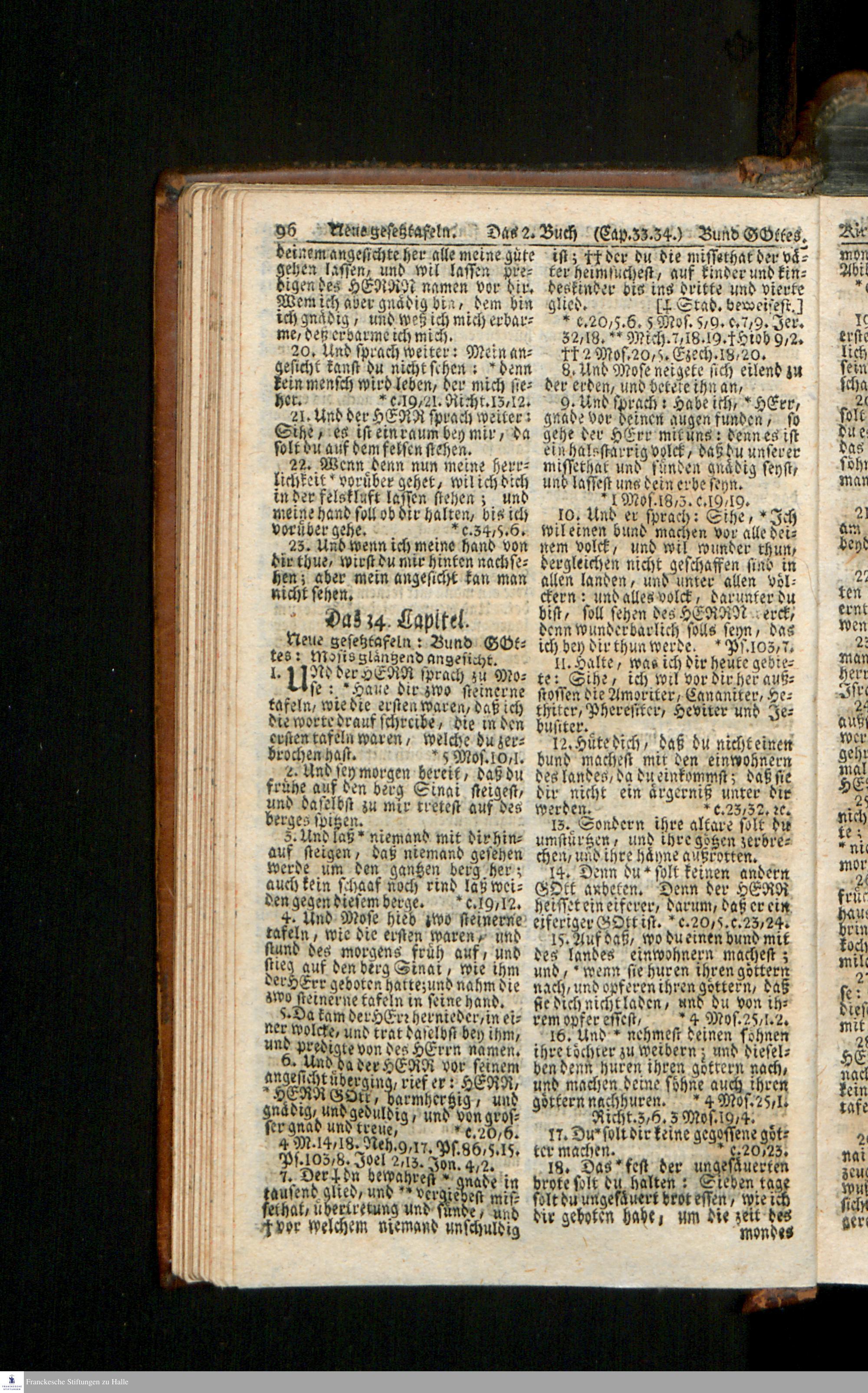 Biblia, Das ist: Die gantze Heil. Schrift Altes und Neues Testaments / Nach der Teutschen Ubersetzung D. Martin Luthers; Mit iedes Capitels kurtzen Summarien/ auch beygefügten vielen und richtigen Parallelen; Mit Fleiß übersehen, Und gegen einige/ sonderlich erstere/ Editiones des sel. Mannes gehalten, auch an unterschiedlichen Orten nach denselben eingerichtet, und von vielen in den bisherigen Exemplarien hin und wieder eingeschlichenen Druckfehlern gesaubert. Nebst einer Vorrede Hn. Baron Carl Hildebrands v. Canstein.