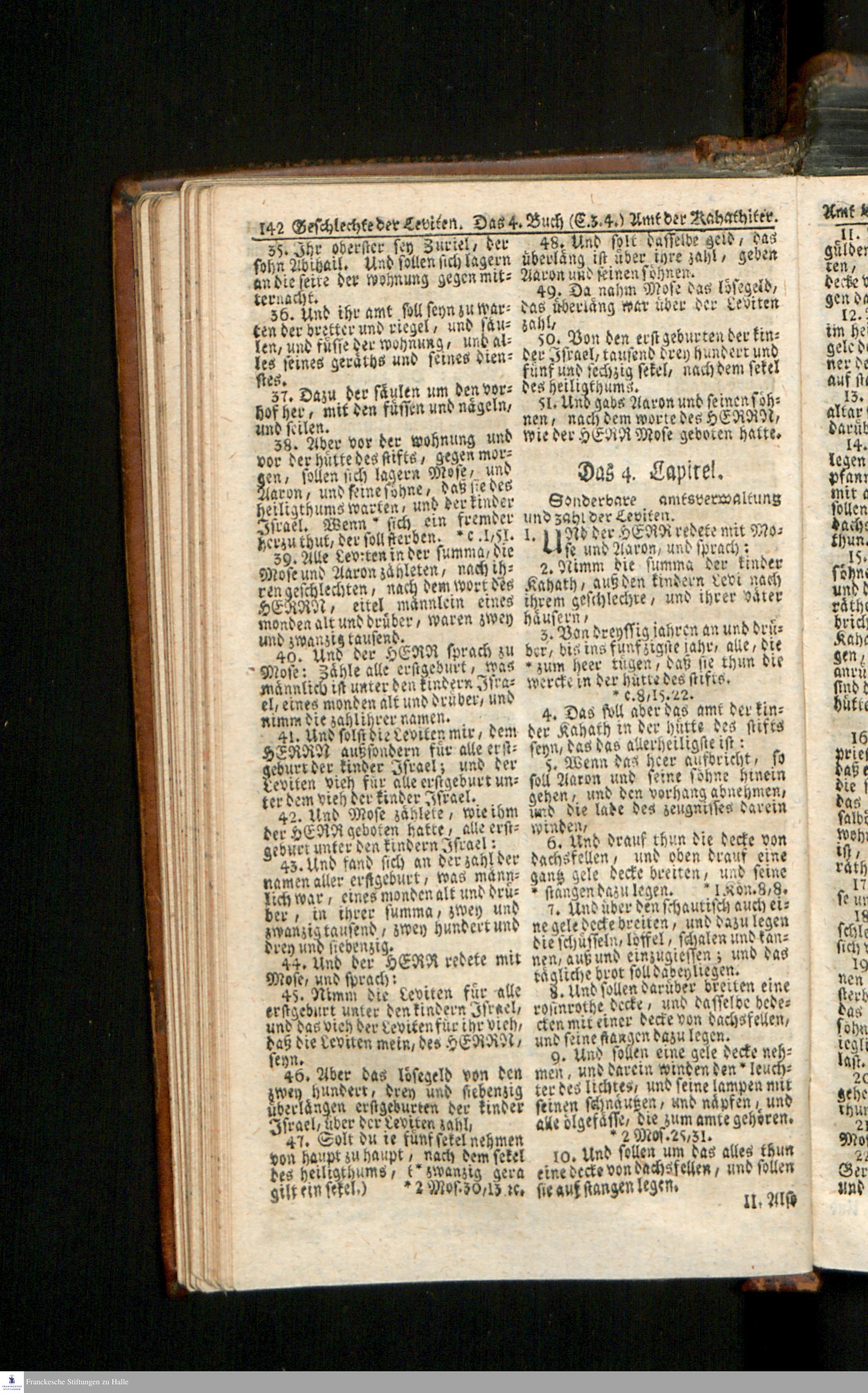 Biblia, Das ist: Die gantze Heil. Schrift Altes und Neues Testaments / Nach der Teutschen Ubersetzung D. Martin Luthers; Mit iedes Capitels kurtzen Summarien/ auch beygefügten vielen und richtigen Parallelen; Mit Fleiß übersehen, Und gegen einige/ sonderlich erstere/ Editiones des sel. Mannes gehalten, auch an unterschiedlichen Orten nach denselben eingerichtet, und von vielen in den bisherigen Exemplarien hin und wieder eingeschlichenen Druckfehlern gesaubert. Nebst einer Vorrede Hn. Baron Carl Hildebrands v. Canstein.