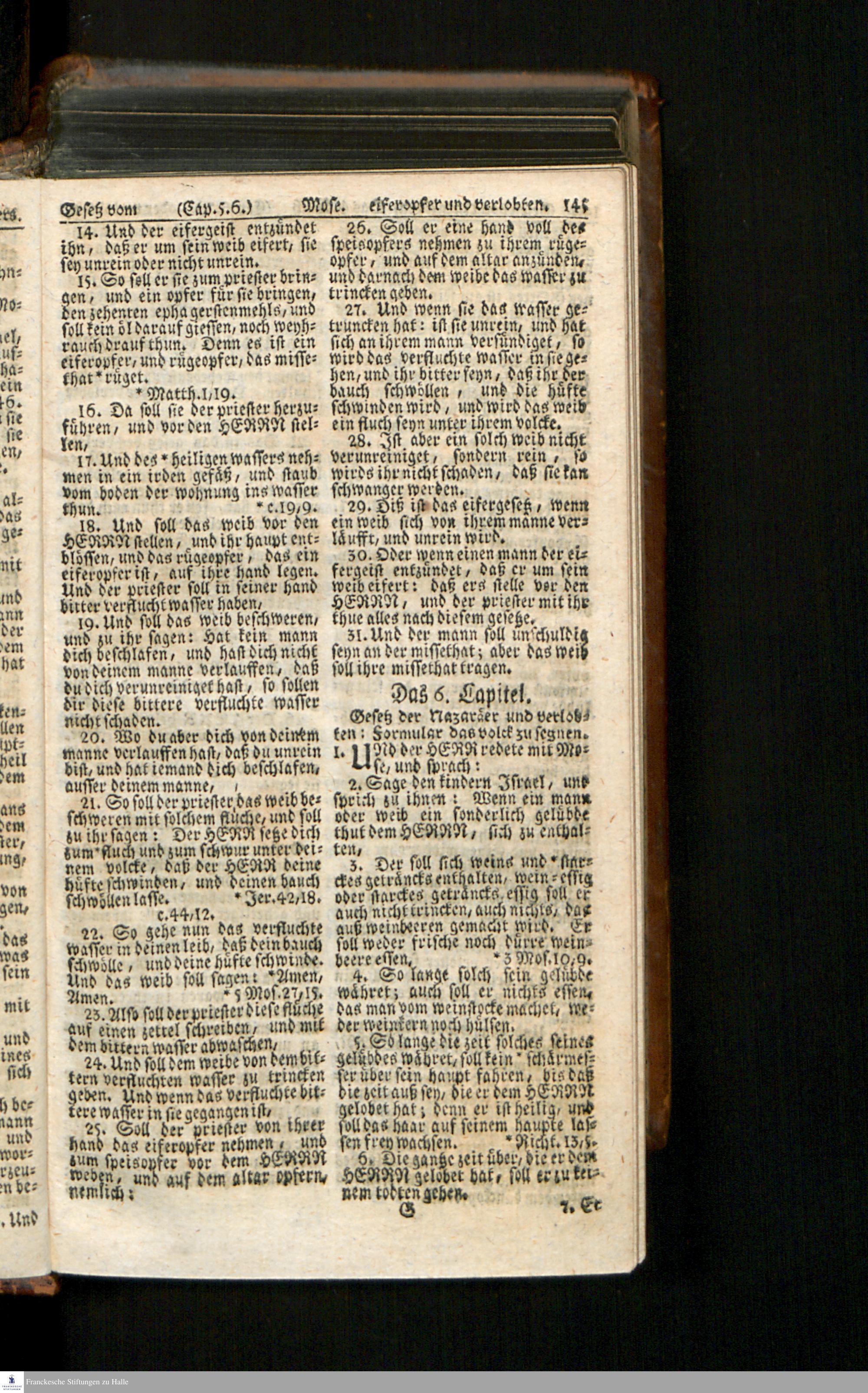 Biblia, Das ist: Die gantze Heil. Schrift Altes und Neues Testaments / Nach der Teutschen Ubersetzung D. Martin Luthers; Mit iedes Capitels kurtzen Summarien/ auch beygefügten vielen und richtigen Parallelen; Mit Fleiß übersehen, Und gegen einige/ sonderlich erstere/ Editiones des sel. Mannes gehalten, auch an unterschiedlichen Orten nach denselben eingerichtet, und von vielen in den bisherigen Exemplarien hin und wieder eingeschlichenen Druckfehlern gesaubert. Nebst einer Vorrede Hn. Baron Carl Hildebrands v. Canstein.