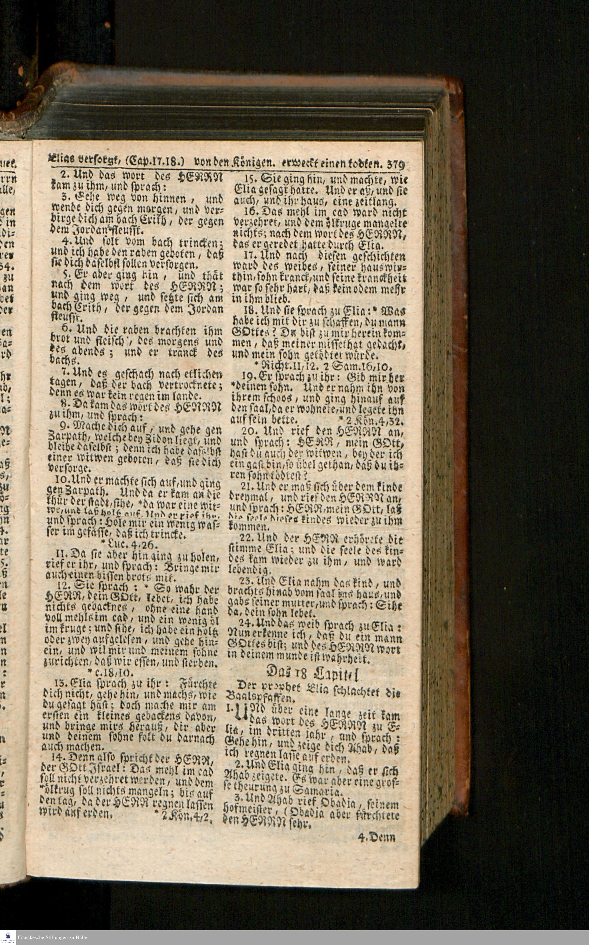 Biblia, Das ist: Die gantze Heil. Schrift Altes und Neues Testaments / Nach der Teutschen Ubersetzung D. Martin Luthers; Mit iedes Capitels kurtzen Summarien/ auch beygefügten vielen und richtigen Parallelen; Mit Fleiß übersehen, Und gegen einige/ sonderlich erstere/ Editiones des sel. Mannes gehalten, auch an unterschiedlichen Orten nach denselben eingerichtet, und von vielen in den bisherigen Exemplarien hin und wieder eingeschlichenen Druckfehlern gesaubert. Nebst einer Vorrede Hn. Baron Carl Hildebrands v. Canstein.