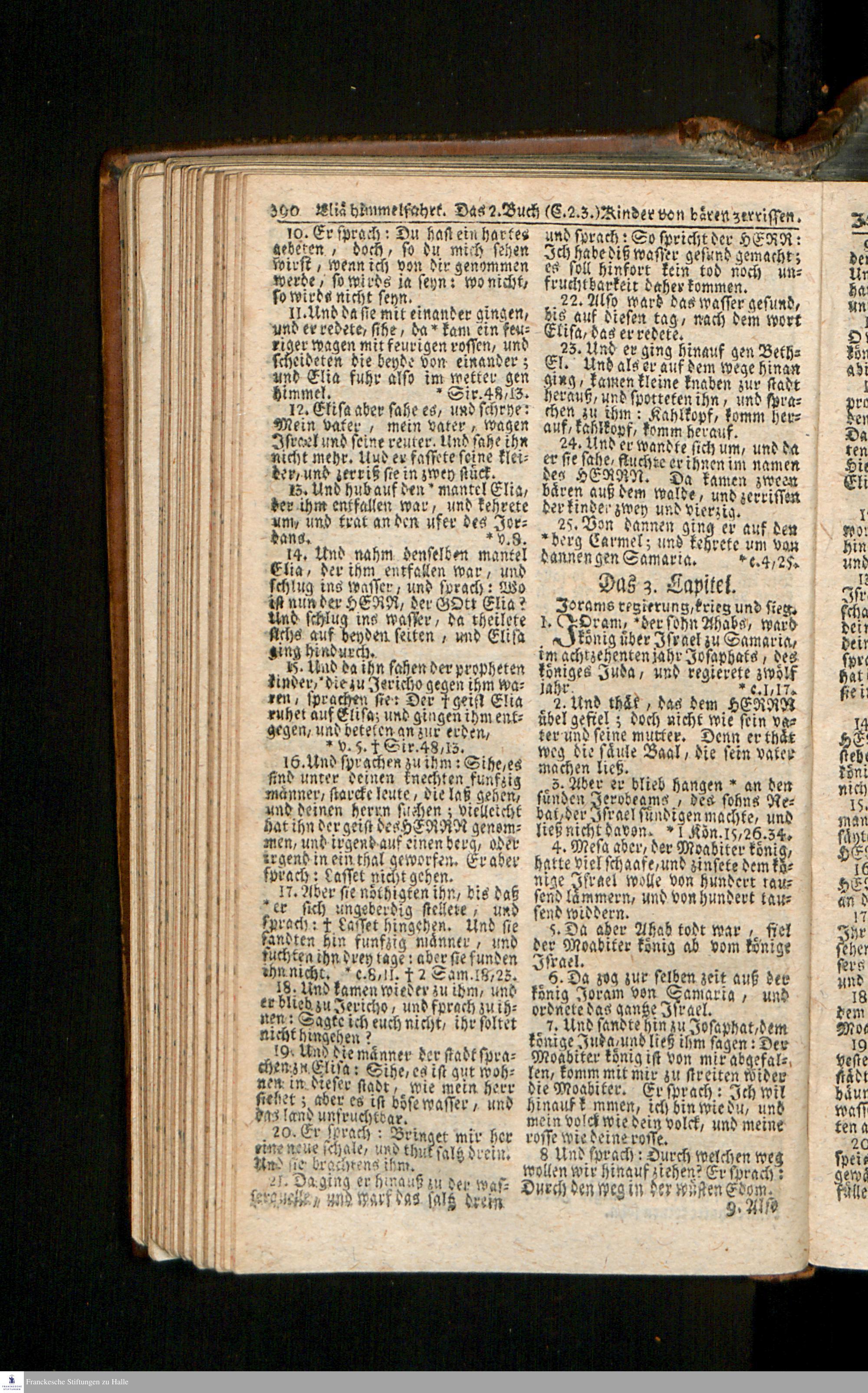 Biblia, Das ist: Die gantze Heil. Schrift Altes und Neues Testaments / Nach der Teutschen Ubersetzung D. Martin Luthers; Mit iedes Capitels kurtzen Summarien/ auch beygefügten vielen und richtigen Parallelen; Mit Fleiß übersehen, Und gegen einige/ sonderlich erstere/ Editiones des sel. Mannes gehalten, auch an unterschiedlichen Orten nach denselben eingerichtet, und von vielen in den bisherigen Exemplarien hin und wieder eingeschlichenen Druckfehlern gesaubert. Nebst einer Vorrede Hn. Baron Carl Hildebrands v. Canstein.