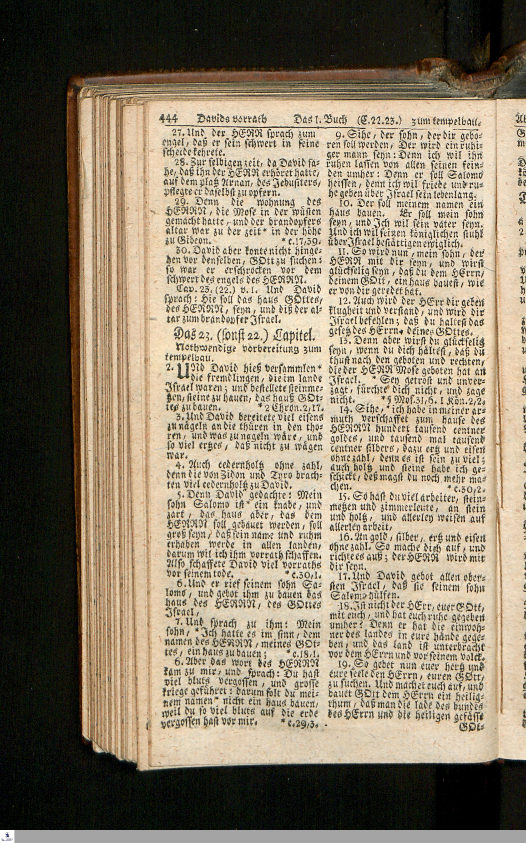 Biblia, Das ist: Die gantze Heil. Schrift Altes und Neues Testaments / Nach der Teutschen Ubersetzung D. Martin Luthers; Mit iedes Capitels kurtzen Summarien/ auch beygefügten vielen und richtigen Parallelen; Mit Fleiß übersehen, Und gegen einige/ sonderlich erstere/ Editiones des sel. Mannes gehalten, auch an unterschiedlichen Orten nach denselben eingerichtet, und von vielen in den bisherigen Exemplarien hin und wieder eingeschlichenen Druckfehlern gesaubert. Nebst einer Vorrede Hn. Baron Carl Hildebrands v. Canstein.