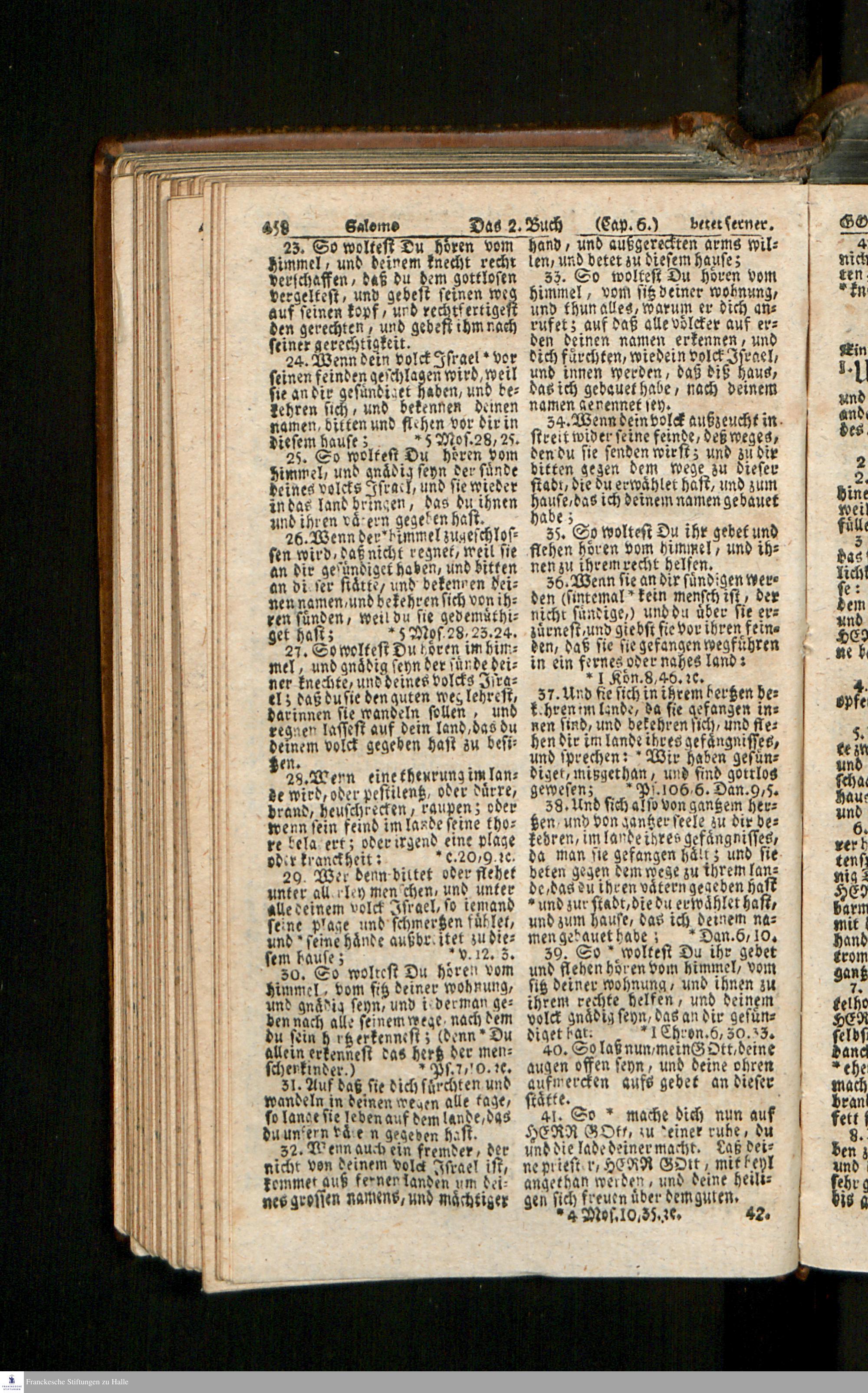 Biblia, Das ist: Die gantze Heil. Schrift Altes und Neues Testaments / Nach der Teutschen Ubersetzung D. Martin Luthers; Mit iedes Capitels kurtzen Summarien/ auch beygefügten vielen und richtigen Parallelen; Mit Fleiß übersehen, Und gegen einige/ sonderlich erstere/ Editiones des sel. Mannes gehalten, auch an unterschiedlichen Orten nach denselben eingerichtet, und von vielen in den bisherigen Exemplarien hin und wieder eingeschlichenen Druckfehlern gesaubert. Nebst einer Vorrede Hn. Baron Carl Hildebrands v. Canstein.