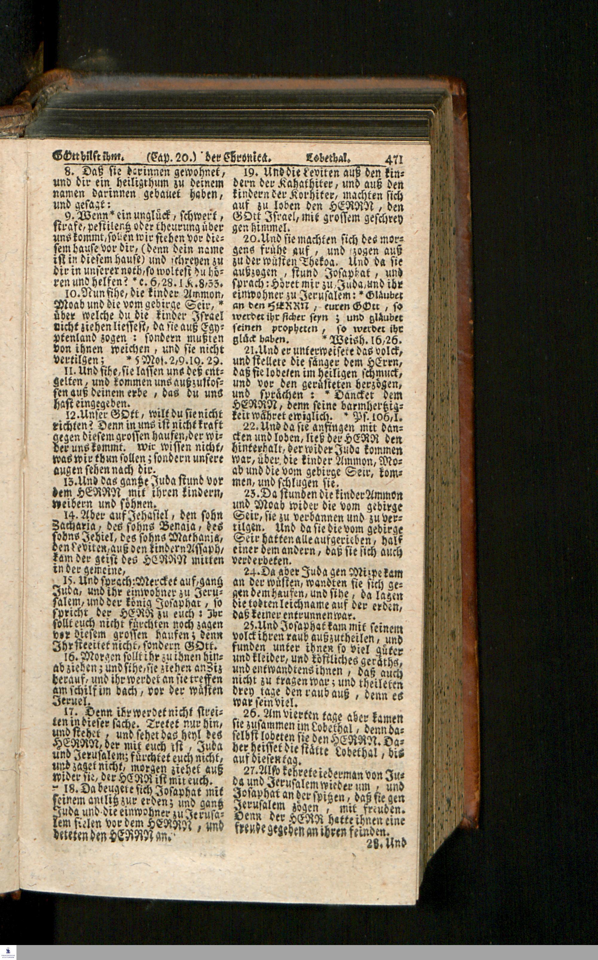 Biblia, Das ist: Die gantze Heil. Schrift Altes und Neues Testaments / Nach der Teutschen Ubersetzung D. Martin Luthers; Mit iedes Capitels kurtzen Summarien/ auch beygefügten vielen und richtigen Parallelen; Mit Fleiß übersehen, Und gegen einige/ sonderlich erstere/ Editiones des sel. Mannes gehalten, auch an unterschiedlichen Orten nach denselben eingerichtet, und von vielen in den bisherigen Exemplarien hin und wieder eingeschlichenen Druckfehlern gesaubert. Nebst einer Vorrede Hn. Baron Carl Hildebrands v. Canstein.