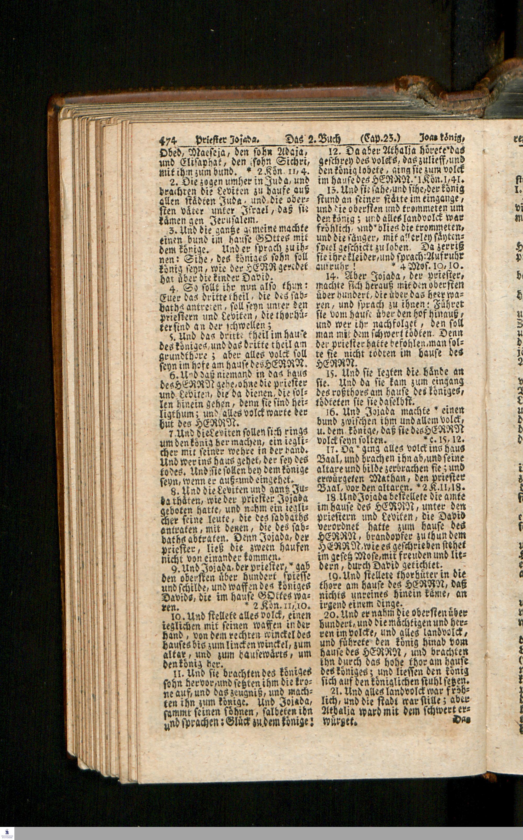 Biblia, Das ist: Die gantze Heil. Schrift Altes und Neues Testaments / Nach der Teutschen Ubersetzung D. Martin Luthers; Mit iedes Capitels kurtzen Summarien/ auch beygefügten vielen und richtigen Parallelen; Mit Fleiß übersehen, Und gegen einige/ sonderlich erstere/ Editiones des sel. Mannes gehalten, auch an unterschiedlichen Orten nach denselben eingerichtet, und von vielen in den bisherigen Exemplarien hin und wieder eingeschlichenen Druckfehlern gesaubert. Nebst einer Vorrede Hn. Baron Carl Hildebrands v. Canstein.