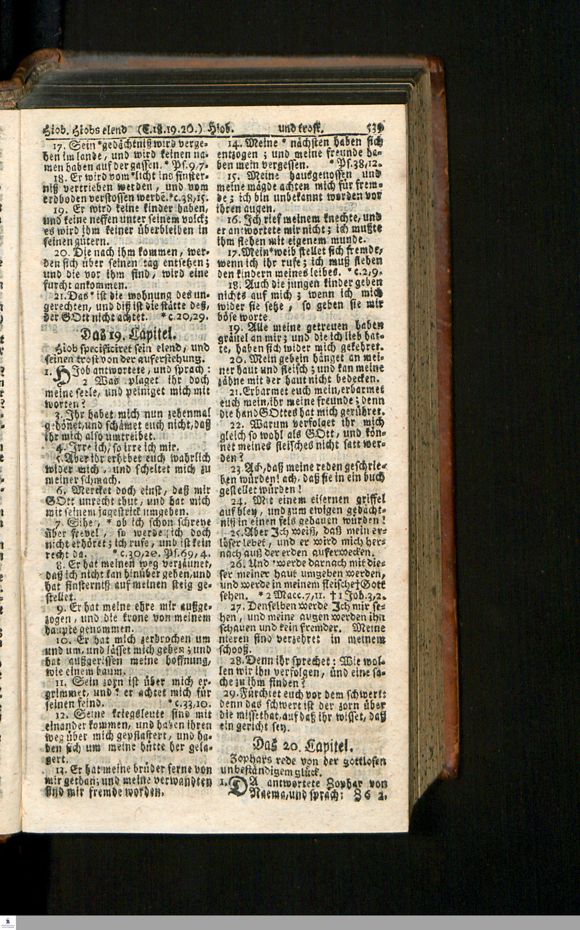 Biblia, Das ist: Die gantze Heil. Schrift Altes und Neues Testaments / Nach der Teutschen Ubersetzung D. Martin Luthers; Mit iedes Capitels kurtzen Summarien/ auch beygefügten vielen und richtigen Parallelen; Mit Fleiß übersehen, Und gegen einige/ sonderlich erstere/ Editiones des sel. Mannes gehalten, auch an unterschiedlichen Orten nach denselben eingerichtet, und von vielen in den bisherigen Exemplarien hin und wieder eingeschlichenen Druckfehlern gesaubert. Nebst einer Vorrede Hn. Baron Carl Hildebrands v. Canstein.