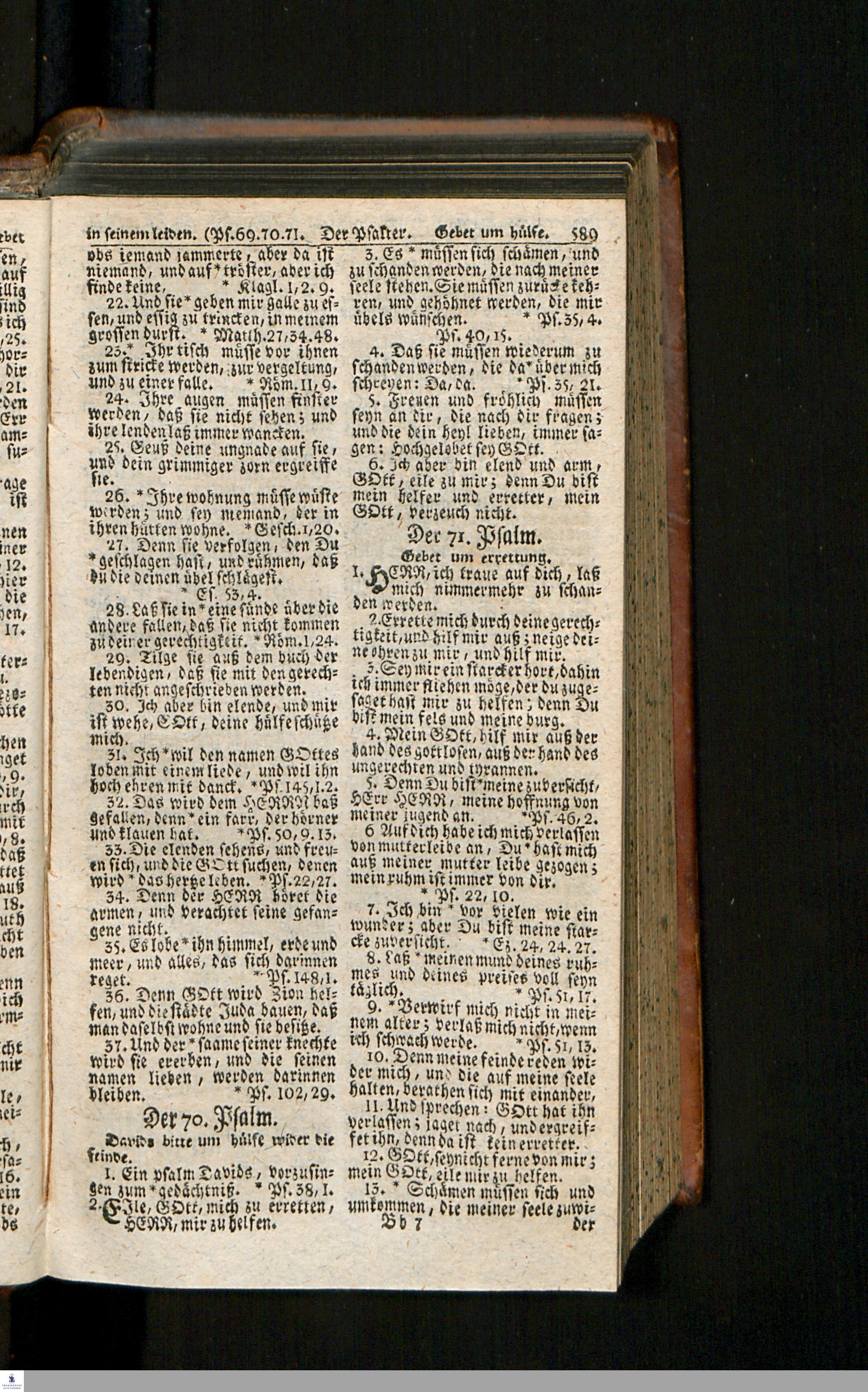 Biblia, Das ist: Die gantze Heil. Schrift Altes und Neues Testaments / Nach der Teutschen Ubersetzung D. Martin Luthers; Mit iedes Capitels kurtzen Summarien/ auch beygefügten vielen und richtigen Parallelen; Mit Fleiß übersehen, Und gegen einige/ sonderlich erstere/ Editiones des sel. Mannes gehalten, auch an unterschiedlichen Orten nach denselben eingerichtet, und von vielen in den bisherigen Exemplarien hin und wieder eingeschlichenen Druckfehlern gesaubert. Nebst einer Vorrede Hn. Baron Carl Hildebrands v. Canstein.