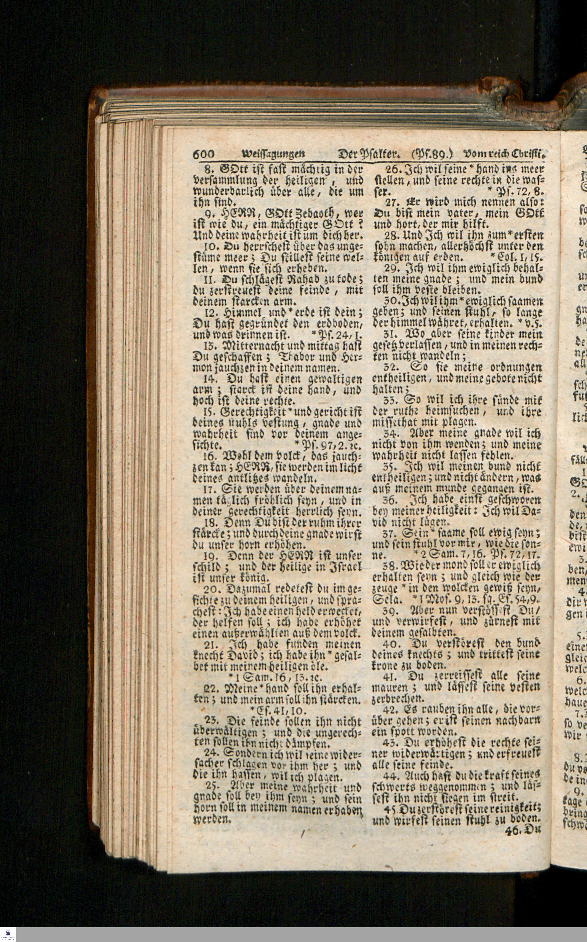 Biblia, Das ist: Die gantze Heil. Schrift Altes und Neues Testaments / Nach der Teutschen Ubersetzung D. Martin Luthers; Mit iedes Capitels kurtzen Summarien/ auch beygefügten vielen und richtigen Parallelen; Mit Fleiß übersehen, Und gegen einige/ sonderlich erstere/ Editiones des sel. Mannes gehalten, auch an unterschiedlichen Orten nach denselben eingerichtet, und von vielen in den bisherigen Exemplarien hin und wieder eingeschlichenen Druckfehlern gesaubert. Nebst einer Vorrede Hn. Baron Carl Hildebrands v. Canstein.