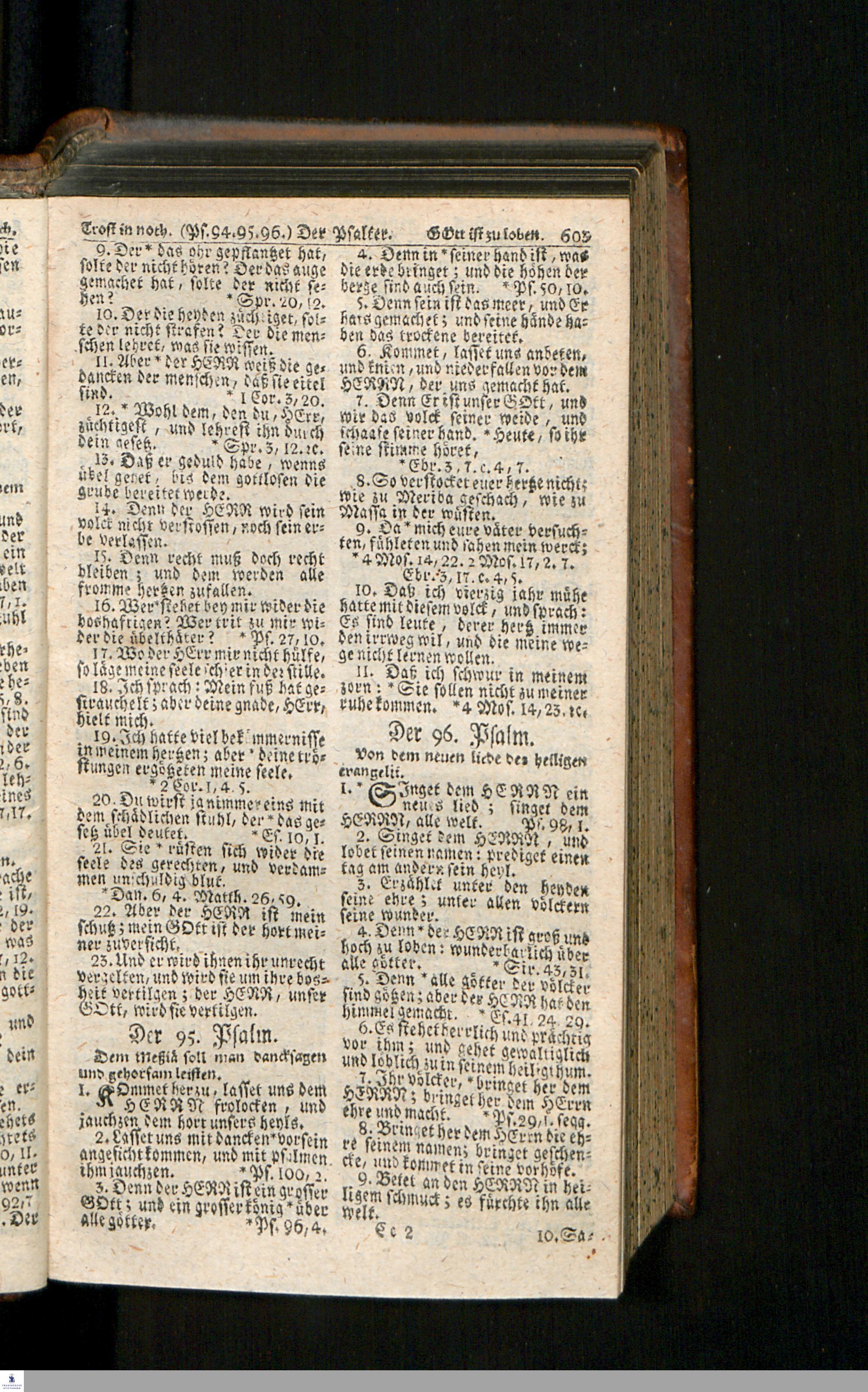 Biblia, Das ist: Die gantze Heil. Schrift Altes und Neues Testaments / Nach der Teutschen Ubersetzung D. Martin Luthers; Mit iedes Capitels kurtzen Summarien/ auch beygefügten vielen und richtigen Parallelen; Mit Fleiß übersehen, Und gegen einige/ sonderlich erstere/ Editiones des sel. Mannes gehalten, auch an unterschiedlichen Orten nach denselben eingerichtet, und von vielen in den bisherigen Exemplarien hin und wieder eingeschlichenen Druckfehlern gesaubert. Nebst einer Vorrede Hn. Baron Carl Hildebrands v. Canstein.