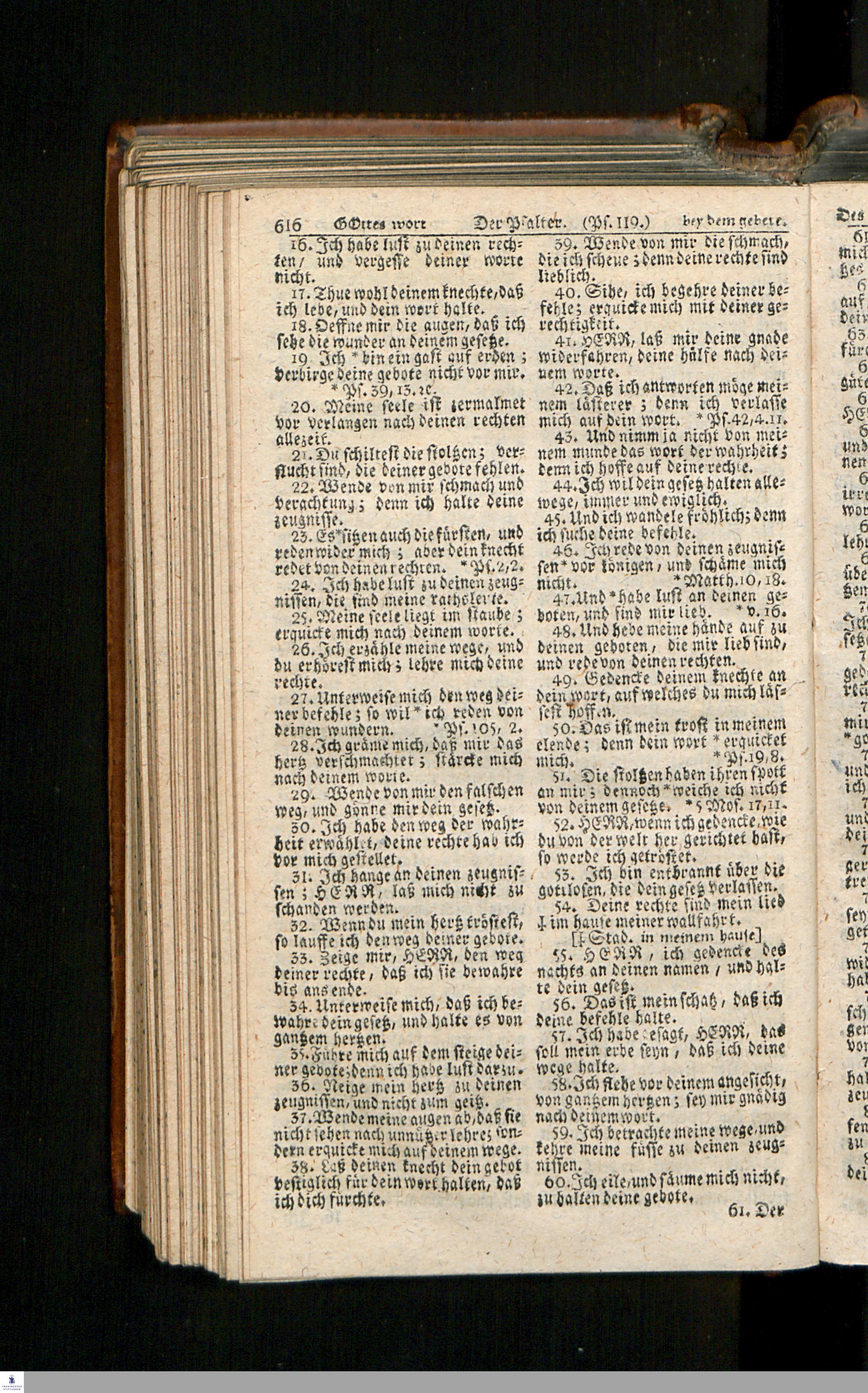 Biblia, Das ist: Die gantze Heil. Schrift Altes und Neues Testaments / Nach der Teutschen Ubersetzung D. Martin Luthers; Mit iedes Capitels kurtzen Summarien/ auch beygefügten vielen und richtigen Parallelen; Mit Fleiß übersehen, Und gegen einige/ sonderlich erstere/ Editiones des sel. Mannes gehalten, auch an unterschiedlichen Orten nach denselben eingerichtet, und von vielen in den bisherigen Exemplarien hin und wieder eingeschlichenen Druckfehlern gesaubert. Nebst einer Vorrede Hn. Baron Carl Hildebrands v. Canstein.