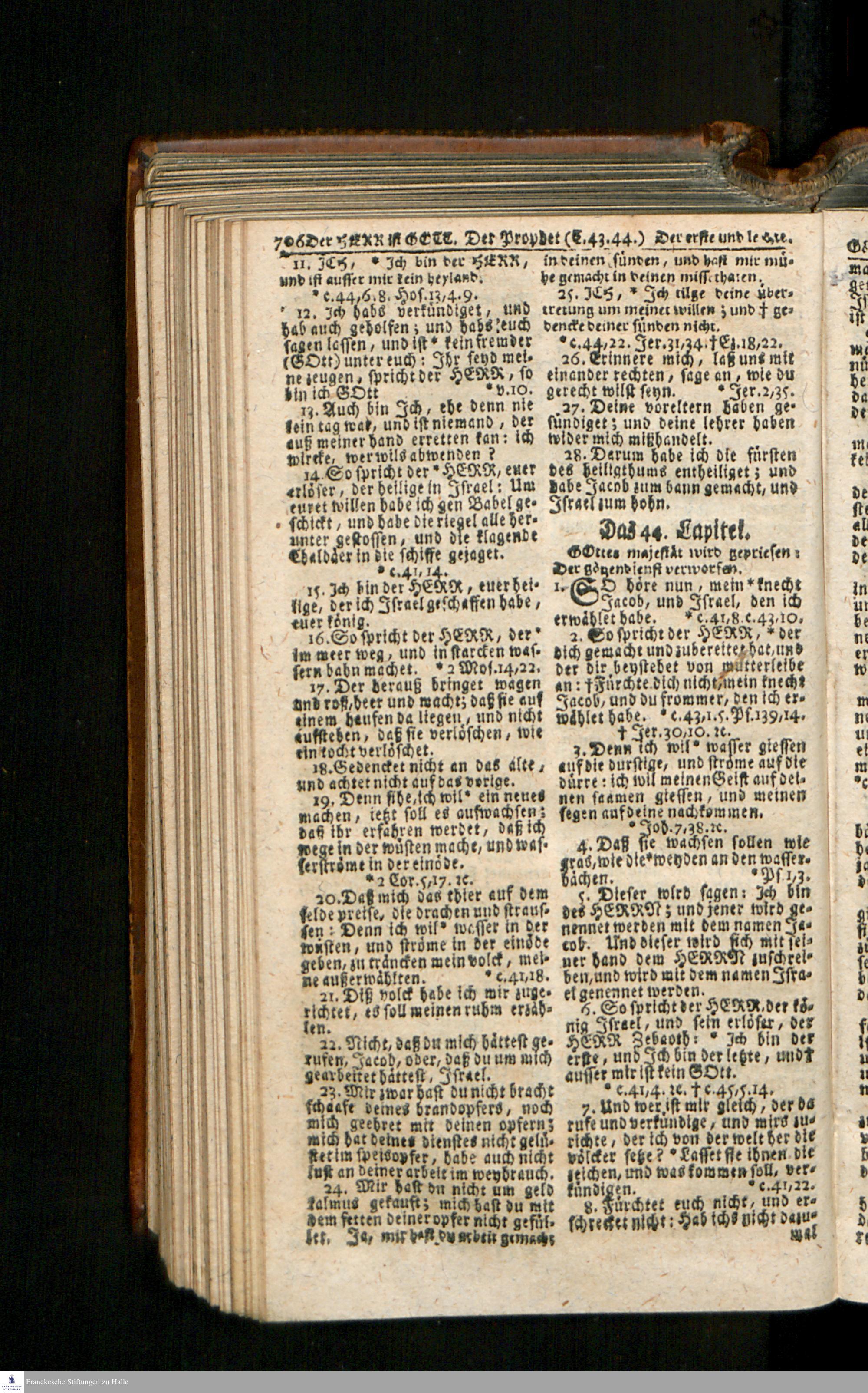 Biblia, Das ist: Die gantze Heil. Schrift Altes und Neues Testaments / Nach der Teutschen Ubersetzung D. Martin Luthers; Mit iedes Capitels kurtzen Summarien/ auch beygefügten vielen und richtigen Parallelen; Mit Fleiß übersehen, Und gegen einige/ sonderlich erstere/ Editiones des sel. Mannes gehalten, auch an unterschiedlichen Orten nach denselben eingerichtet, und von vielen in den bisherigen Exemplarien hin und wieder eingeschlichenen Druckfehlern gesaubert. Nebst einer Vorrede Hn. Baron Carl Hildebrands v. Canstein.
