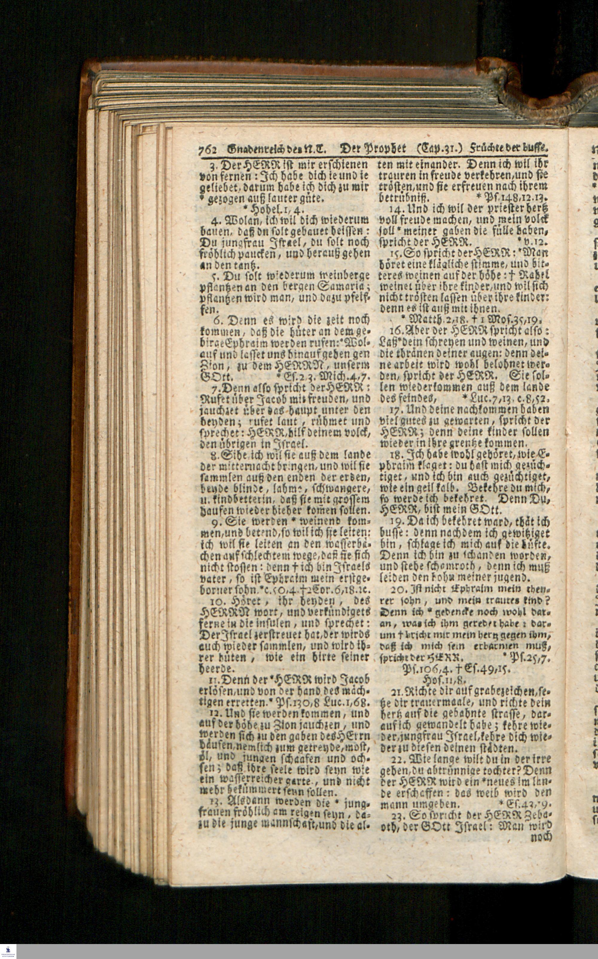 Biblia, Das ist: Die gantze Heil. Schrift Altes und Neues Testaments / Nach der Teutschen Ubersetzung D. Martin Luthers; Mit iedes Capitels kurtzen Summarien/ auch beygefügten vielen und richtigen Parallelen; Mit Fleiß übersehen, Und gegen einige/ sonderlich erstere/ Editiones des sel. Mannes gehalten, auch an unterschiedlichen Orten nach denselben eingerichtet, und von vielen in den bisherigen Exemplarien hin und wieder eingeschlichenen Druckfehlern gesaubert. Nebst einer Vorrede Hn. Baron Carl Hildebrands v. Canstein.