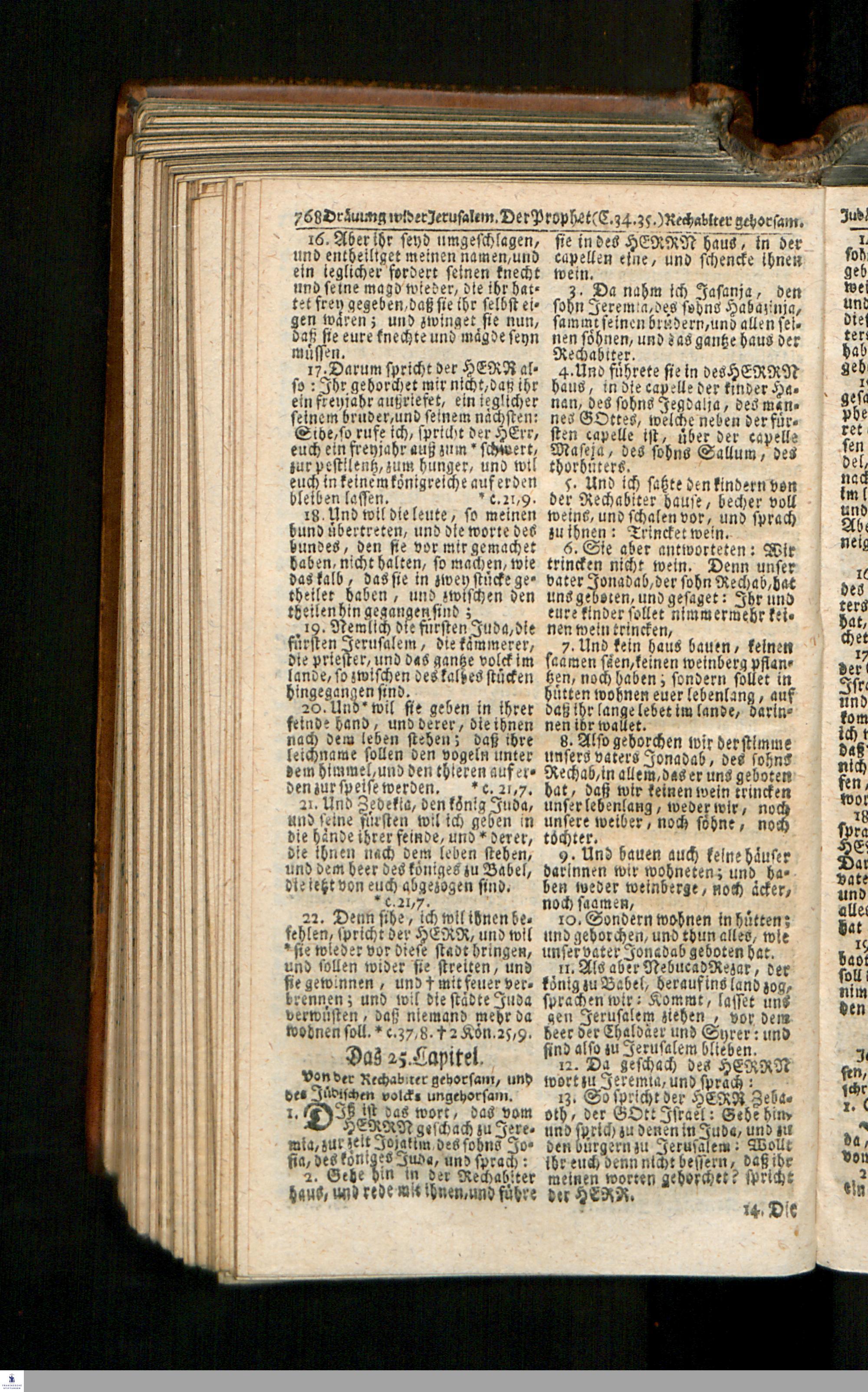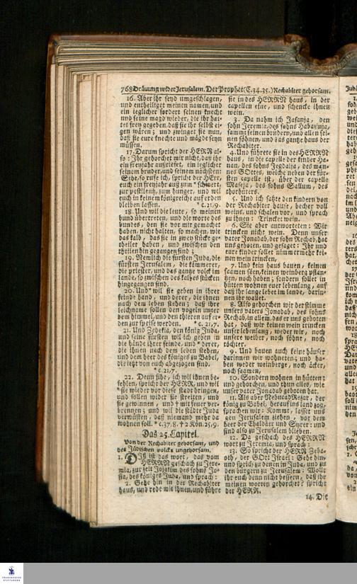 Biblia, Das ist: Die gantze Heil. Schrift Altes und Neues Testaments / Nach der Teutschen Ubersetzung D. Martin Luthers; Mit iedes Capitels kurtzen Summarien/ auch beygefügten vielen und richtigen Parallelen; Mit Fleiß übersehen, Und gegen einige/ sonderlich erstere/ Editiones des sel. Mannes gehalten, auch an unterschiedlichen Orten nach denselben eingerichtet, und von vielen in den bisherigen Exemplarien hin und wieder eingeschlichenen Druckfehlern gesaubert. Nebst einer Vorrede Hn. Baron Carl Hildebrands v. Canstein.