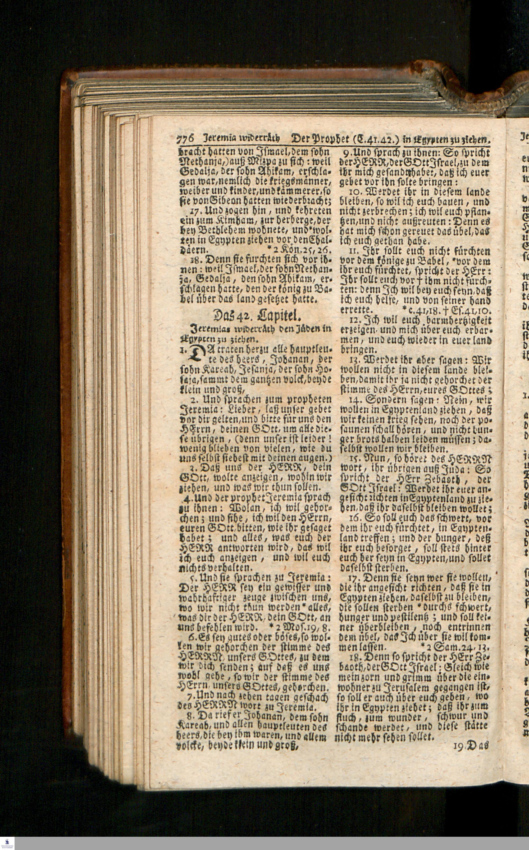 Biblia, Das ist: Die gantze Heil. Schrift Altes und Neues Testaments / Nach der Teutschen Ubersetzung D. Martin Luthers; Mit iedes Capitels kurtzen Summarien/ auch beygefügten vielen und richtigen Parallelen; Mit Fleiß übersehen, Und gegen einige/ sonderlich erstere/ Editiones des sel. Mannes gehalten, auch an unterschiedlichen Orten nach denselben eingerichtet, und von vielen in den bisherigen Exemplarien hin und wieder eingeschlichenen Druckfehlern gesaubert. Nebst einer Vorrede Hn. Baron Carl Hildebrands v. Canstein.