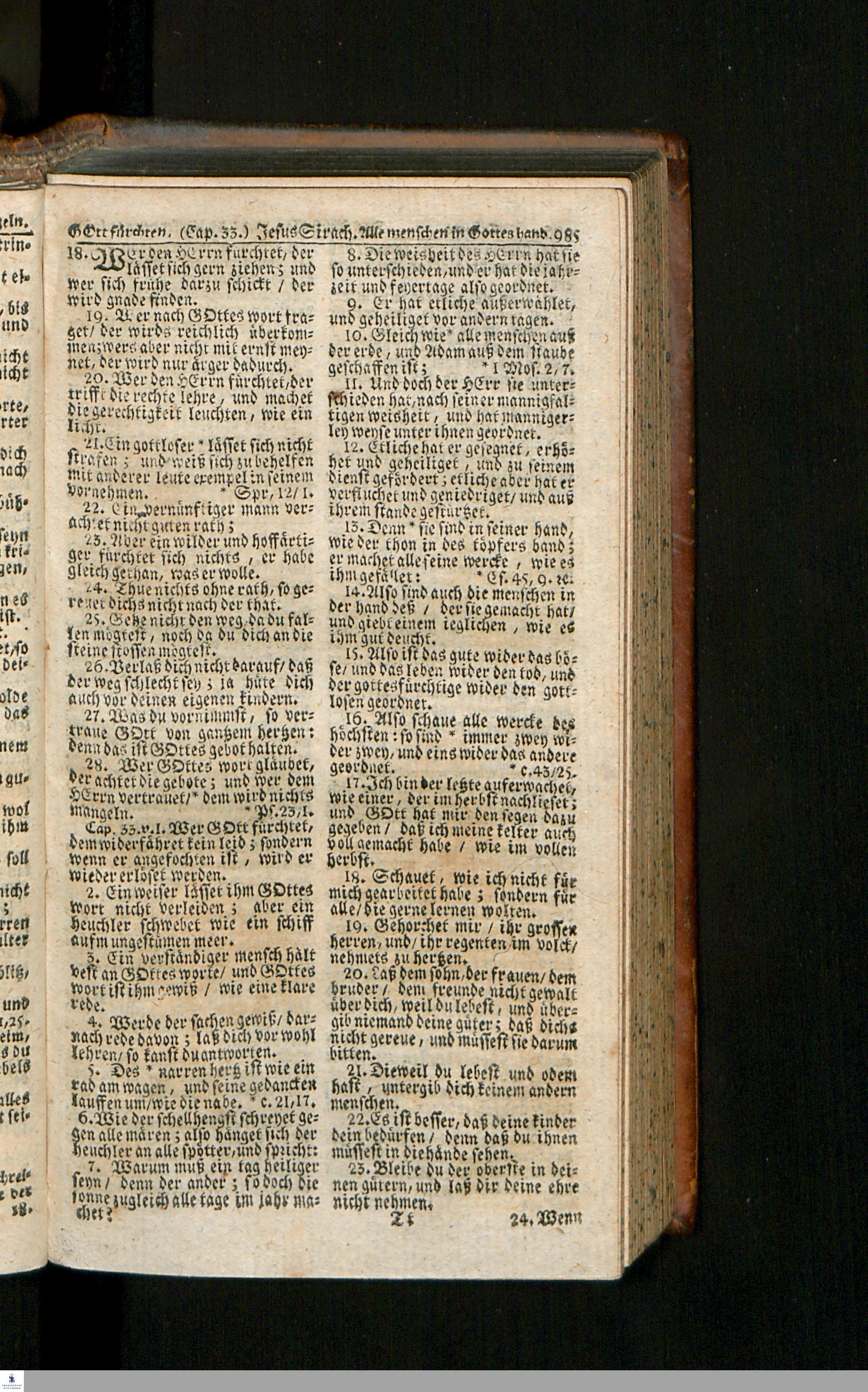 Biblia, Das ist: Die gantze Heil. Schrift Altes und Neues Testaments / Nach der Teutschen Ubersetzung D. Martin Luthers; Mit iedes Capitels kurtzen Summarien/ auch beygefügten vielen und richtigen Parallelen; Mit Fleiß übersehen, Und gegen einige/ sonderlich erstere/ Editiones des sel. Mannes gehalten, auch an unterschiedlichen Orten nach denselben eingerichtet, und von vielen in den bisherigen Exemplarien hin und wieder eingeschlichenen Druckfehlern gesaubert. Nebst einer Vorrede Hn. Baron Carl Hildebrands v. Canstein.
