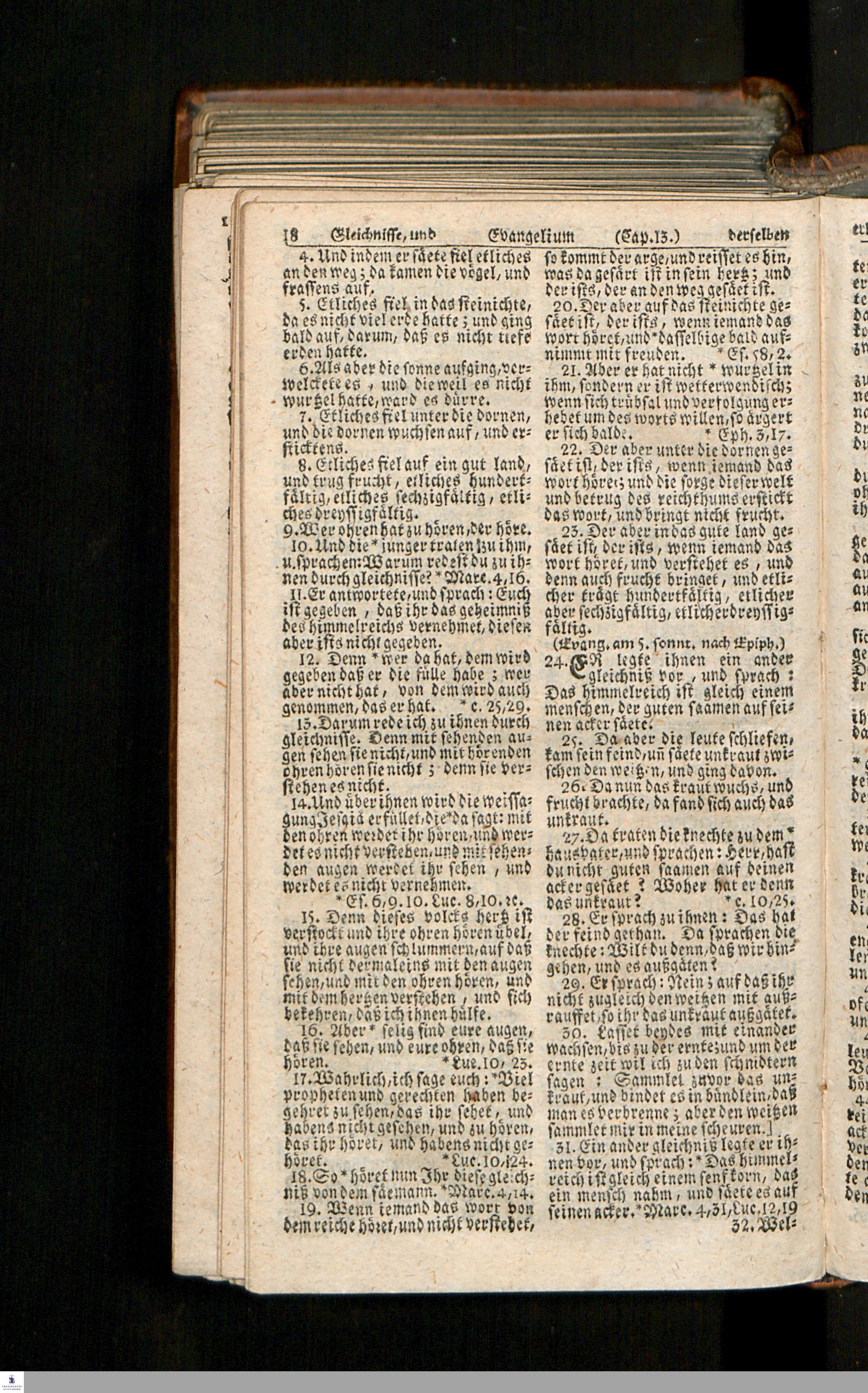 Biblia, Das ist: Die gantze Heil. Schrift Altes und Neues Testaments / Nach der Teutschen Ubersetzung D. Martin Luthers; Mit iedes Capitels kurtzen Summarien/ auch beygefügten vielen und richtigen Parallelen; Mit Fleiß übersehen, Und gegen einige/ sonderlich erstere/ Editiones des sel. Mannes gehalten, auch an unterschiedlichen Orten nach denselben eingerichtet, und von vielen in den bisherigen Exemplarien hin und wieder eingeschlichenen Druckfehlern gesaubert. Nebst einer Vorrede Hn. Baron Carl Hildebrands v. Canstein.