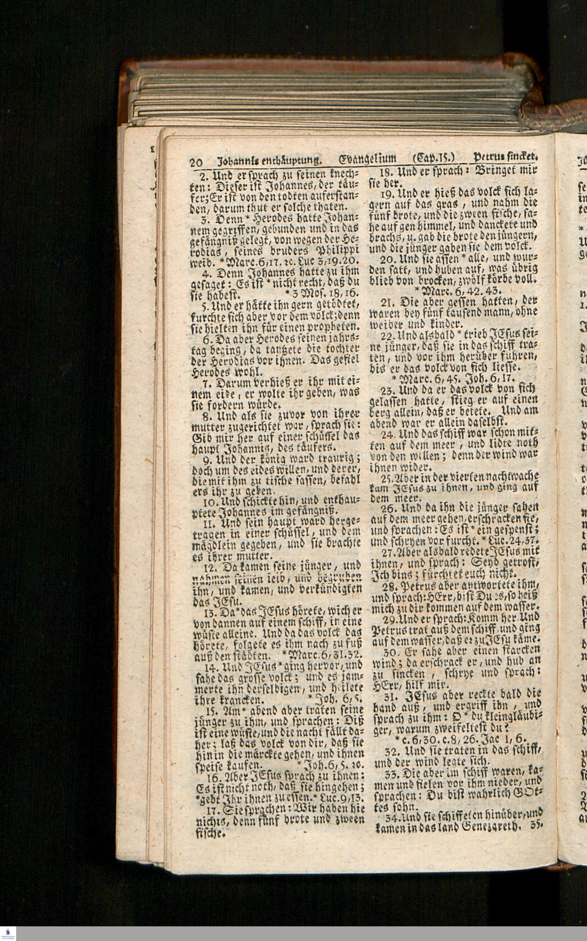 Biblia, Das ist: Die gantze Heil. Schrift Altes und Neues Testaments / Nach der Teutschen Ubersetzung D. Martin Luthers; Mit iedes Capitels kurtzen Summarien/ auch beygefügten vielen und richtigen Parallelen; Mit Fleiß übersehen, Und gegen einige/ sonderlich erstere/ Editiones des sel. Mannes gehalten, auch an unterschiedlichen Orten nach denselben eingerichtet, und von vielen in den bisherigen Exemplarien hin und wieder eingeschlichenen Druckfehlern gesaubert. Nebst einer Vorrede Hn. Baron Carl Hildebrands v. Canstein.