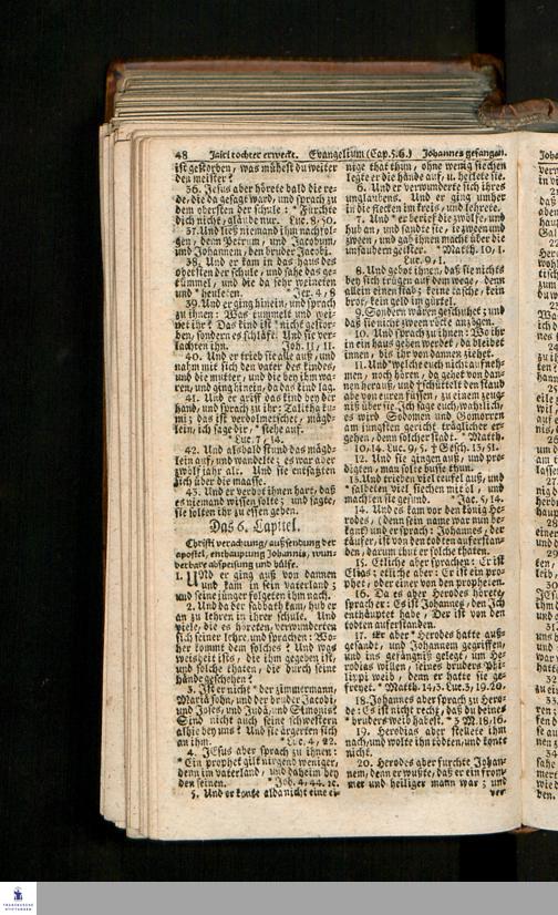 Biblia, Das ist: Die gantze Heil. Schrift Altes und Neues Testaments / Nach der Teutschen Ubersetzung D. Martin Luthers; Mit iedes Capitels kurtzen Summarien/ auch beygefügten vielen und richtigen Parallelen; Mit Fleiß übersehen, Und gegen einige/ sonderlich erstere/ Editiones des sel. Mannes gehalten, auch an unterschiedlichen Orten nach denselben eingerichtet, und von vielen in den bisherigen Exemplarien hin und wieder eingeschlichenen Druckfehlern gesaubert. Nebst einer Vorrede Hn. Baron Carl Hildebrands v. Canstein.