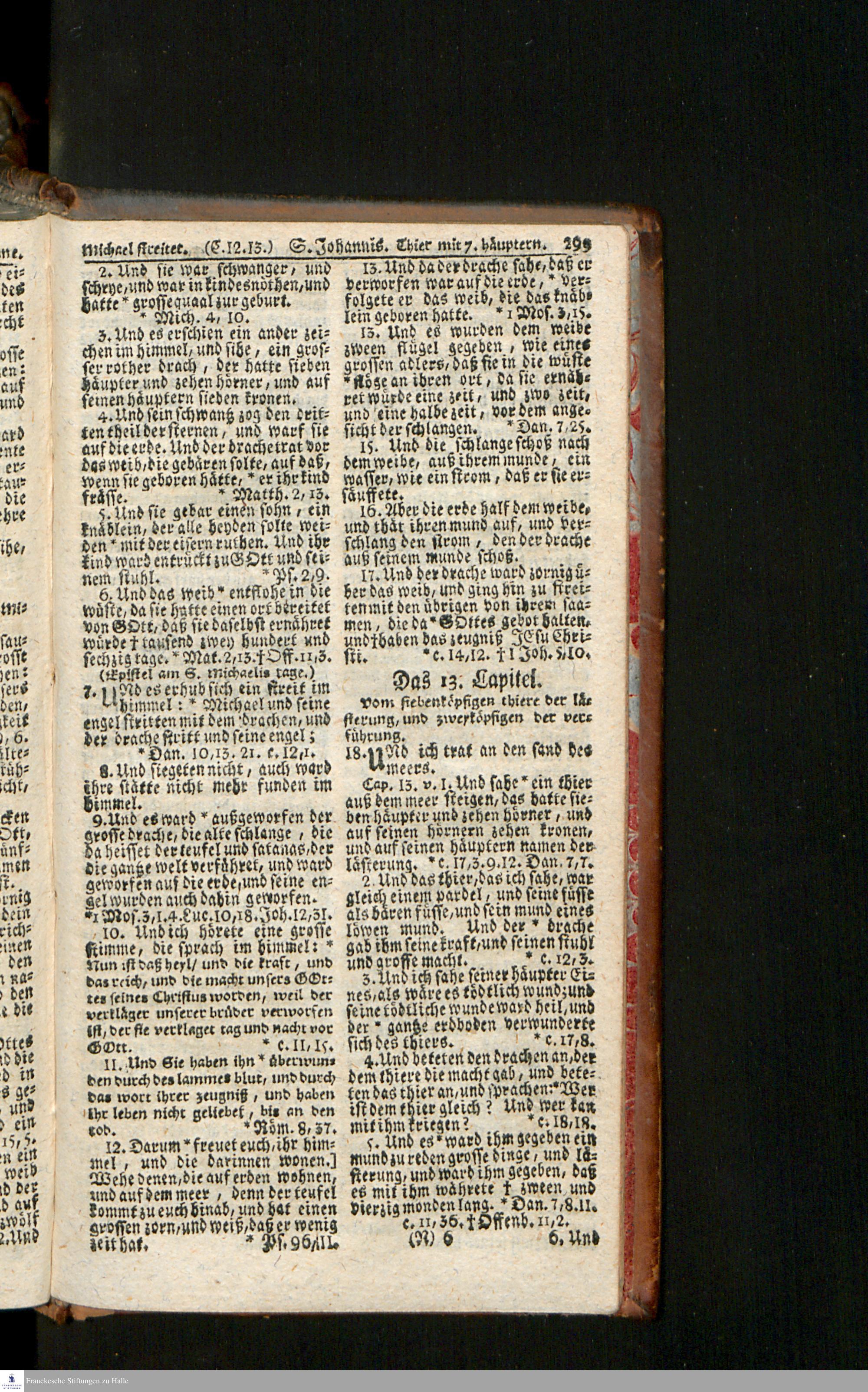 Biblia, Das ist: Die gantze Heil. Schrift Altes und Neues Testaments / Nach der Teutschen Ubersetzung D. Martin Luthers; Mit iedes Capitels kurtzen Summarien/ auch beygefügten vielen und richtigen Parallelen; Mit Fleiß übersehen, Und gegen einige/ sonderlich erstere/ Editiones des sel. Mannes gehalten, auch an unterschiedlichen Orten nach denselben eingerichtet, und von vielen in den bisherigen Exemplarien hin und wieder eingeschlichenen Druckfehlern gesaubert. Nebst einer Vorrede Hn. Baron Carl Hildebrands v. Canstein.