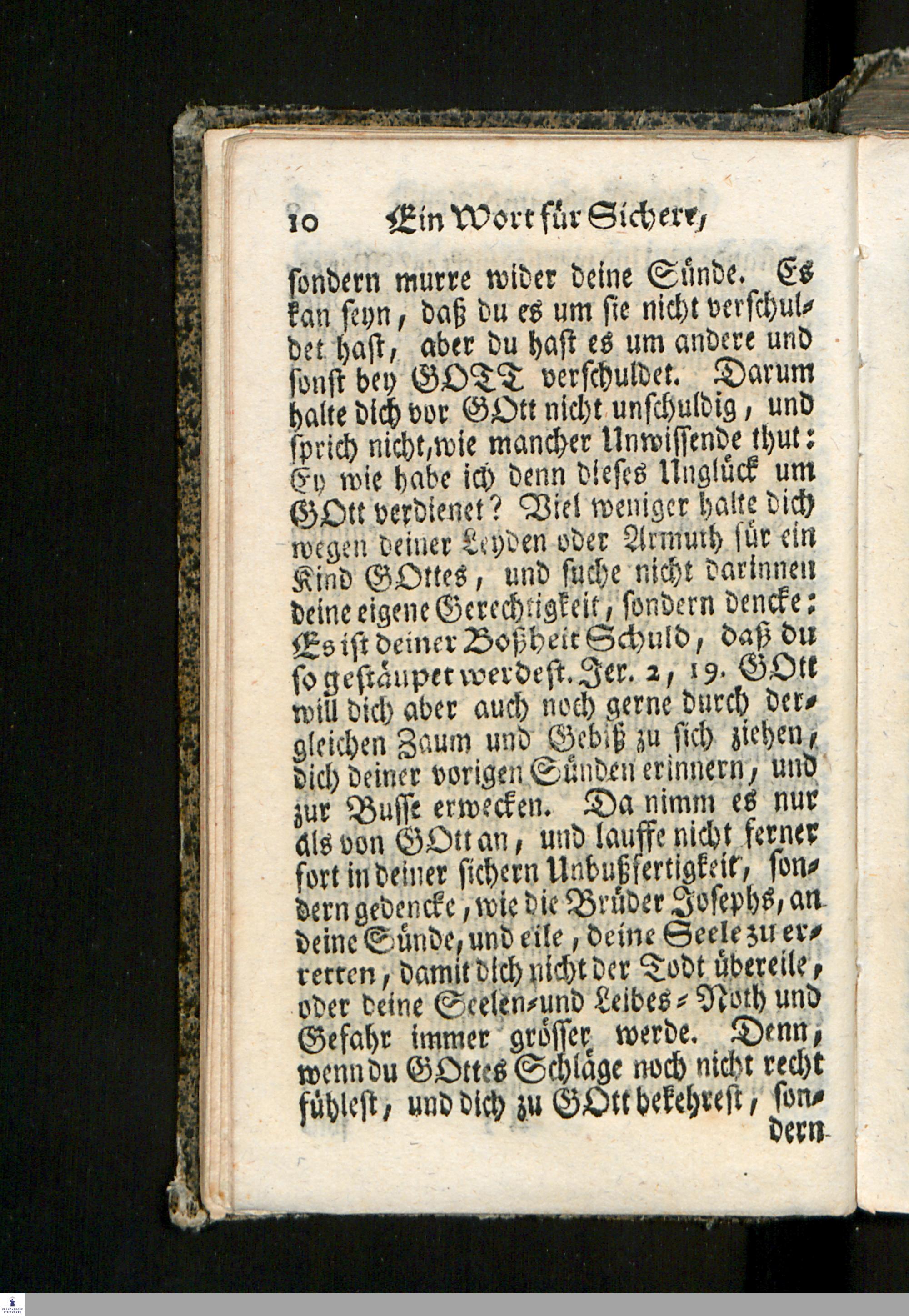 Ein Wort Für die Sichere und in ihr Unglück lauffende, oder Unwissende und bloß äusserlich ehrbare, zum Theil auch Arme und in mancherley Trübsal, Noth und Gefahr schwebende Menschen : Zur nöthigen Warnung, Aufweckung und Anleitung, Wie sie in wahrer Busse und Bekehrung zu Christo, ihre Seele erretten und selig werden können