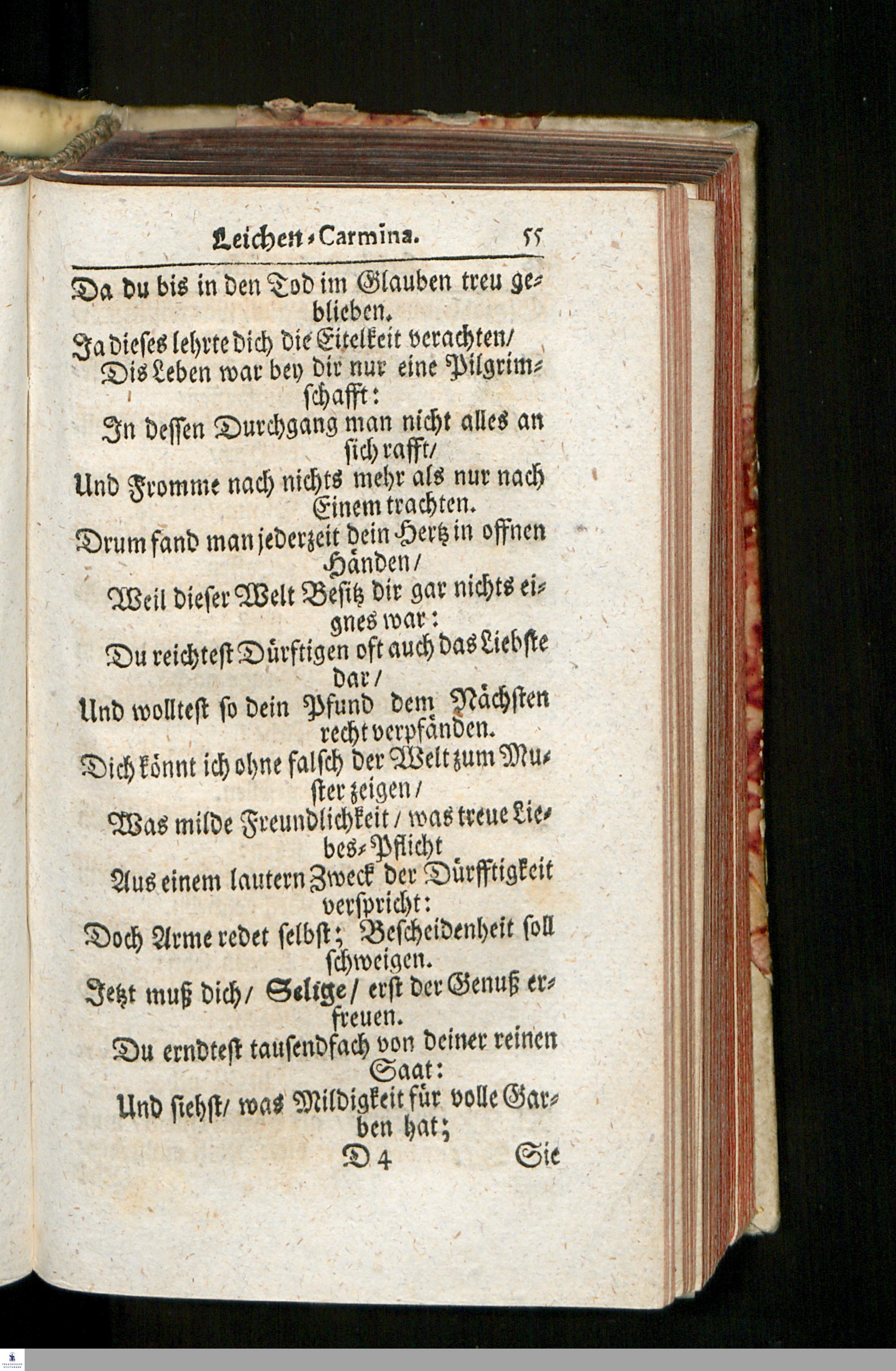 Christliches Denckmaal, Welches Seiner Seligen Ehe-Liebsten, Frauen Anna Catharina Wieglebin, gebohrnen Starckin, Durch Edirung der Ihr gehaltenen Leichen-Predigt, dero Lebens-Laufes und erbaulichen Todes, wie auch einiger Leichen-Carminum guter Gönner und Freunde, aus treuem Hertzen aufgerichtet / M. Joh. Hieronymus Wiegleb, Pastor in Glaucha
