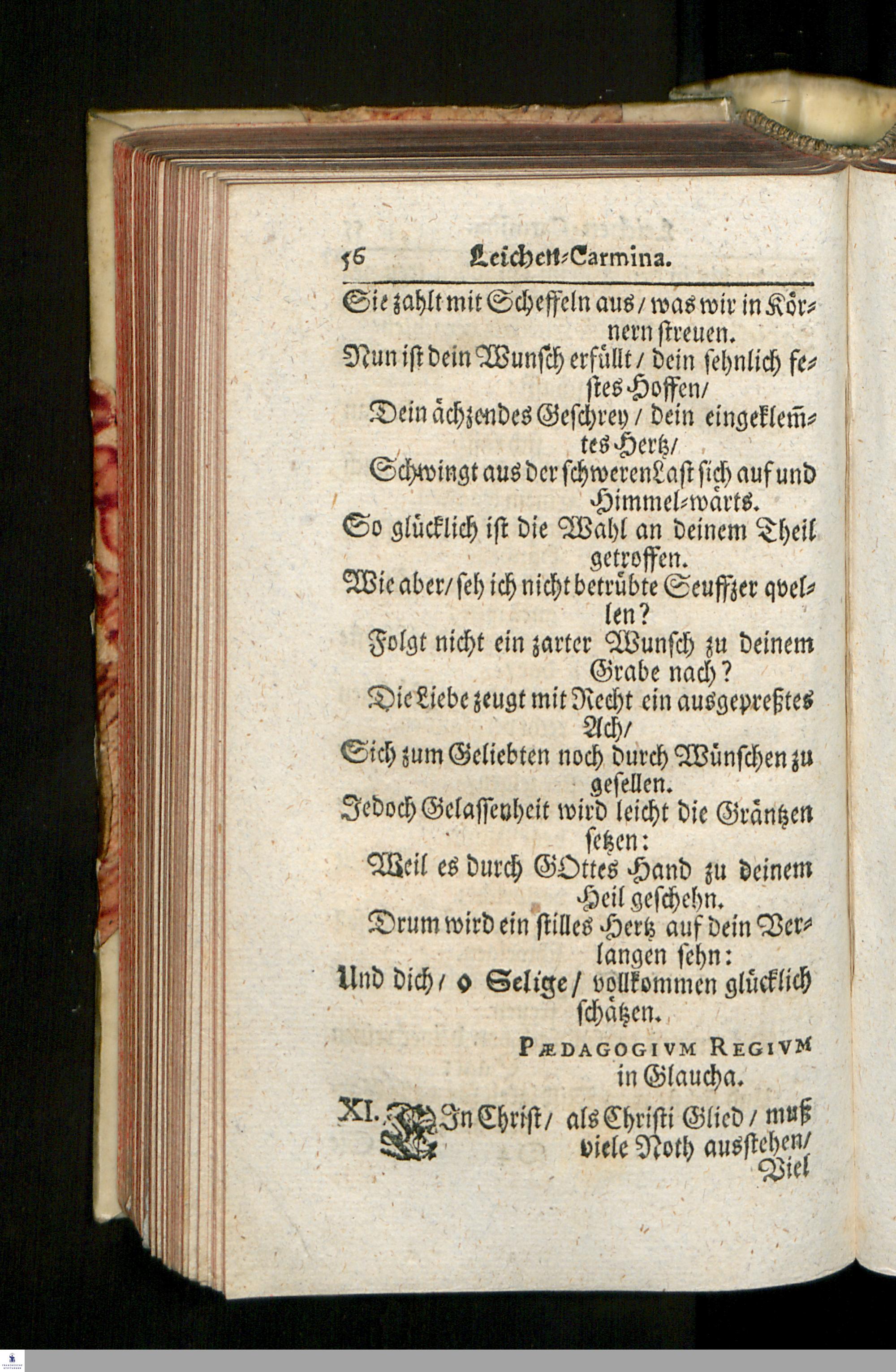 Christliches Denckmaal, Welches Seiner Seligen Ehe-Liebsten, Frauen Anna Catharina Wieglebin, gebohrnen Starckin, Durch Edirung der Ihr gehaltenen Leichen-Predigt, dero Lebens-Laufes und erbaulichen Todes, wie auch einiger Leichen-Carminum guter Gönner und Freunde, aus treuem Hertzen aufgerichtet / M. Joh. Hieronymus Wiegleb, Pastor in Glaucha
