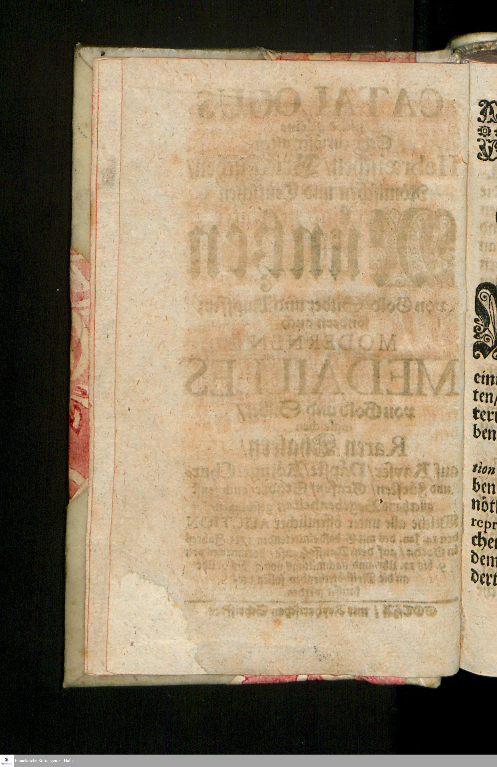 Catalogus nicht alleine Sehr curiöser alten Hebræischen/ Griechischen/ Römischen und Teutschen Müntzen von Gold/ Silber und Kupffer; sondern auch Modernen Medailles von Gold und Silber/ ingleichen Raren Thalern/ auf Kayser/ Päpste/ Könige/ Chur- und Fürsten/ Grafen/ Städte/ auch sonst allerhand Begebenheiten geschlagen : Welche alle unter öffentlicher Auction den 14. Jan. des mit G. bald eintretenden 1715. Jahres in Gotha/ auf dem Kauff-Hause/ vormittags von 9. bis 12. Uhr/ und nachmittags von 2. bis 6. Uhr an die Meist-biethenden sollen verkauffet werden / [Christian Schlegel]