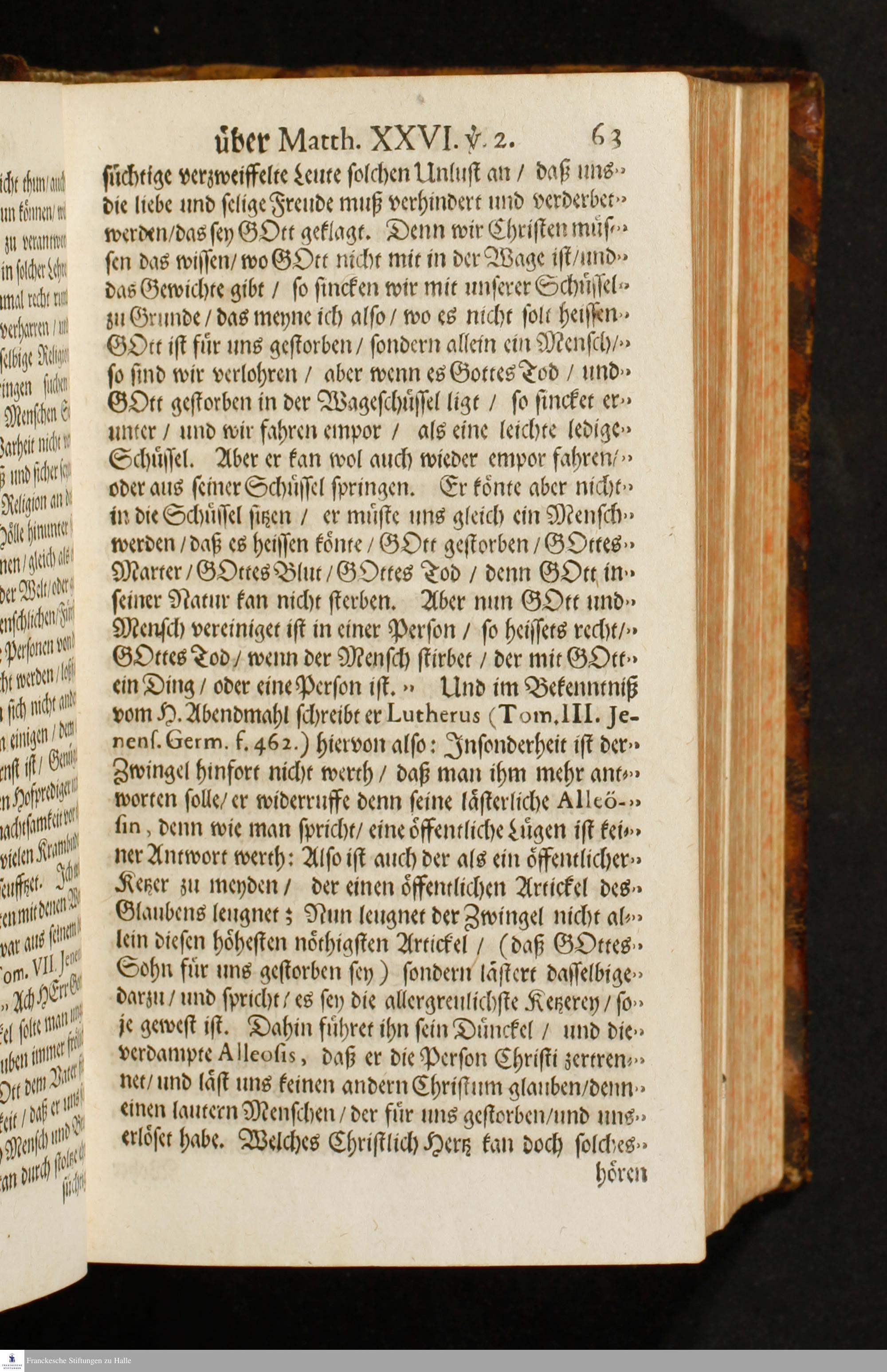 Das Schmertzliche Leiden Jesu : Aus dem Matthæo Von Wort zu Wort gründlich betrachtet/ und zur Erbauung Des Christenthums nützlich angewendet / Von Thoma Crenio [i.e. Thomas Theodor Crusius]