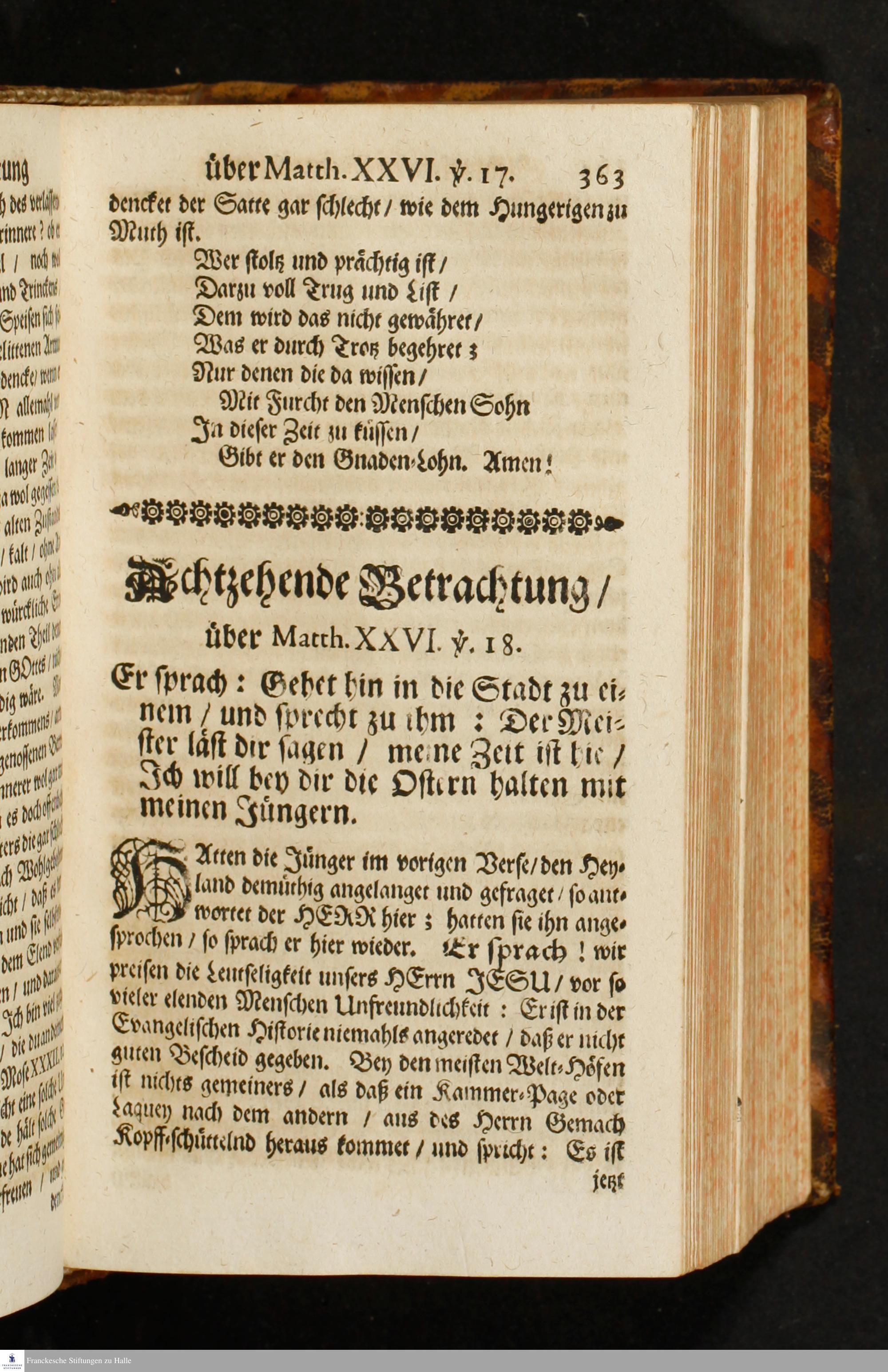 Das Schmertzliche Leiden Jesu : Aus dem Matthæo Von Wort zu Wort gründlich betrachtet/ und zur Erbauung Des Christenthums nützlich angewendet / Von Thoma Crenio [i.e. Thomas Theodor Crusius]
