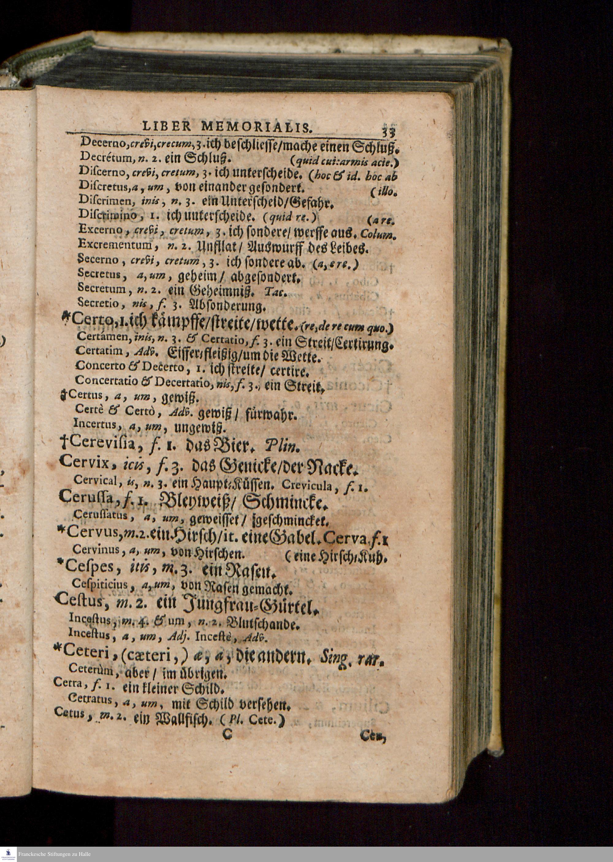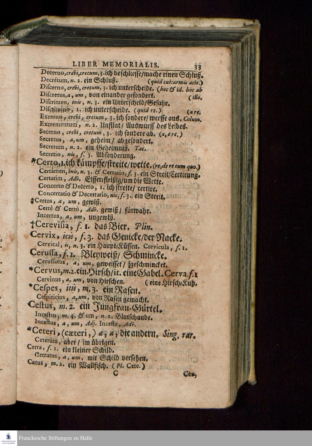 Latinitatis Probatae & Excercitae Liber Memorialis : Natvrali Ordine Dispositvs; Vt sine vlla memoriae defabigatione Notitia Vocabulorum non solum capi facillime, sed feliciter etiam repeti ac conservari possit ... / ... in Vsvm Scholarvm Episcopatvs Mersebvrgensis Conscriptus à Christoph. Cellario, Gymnasii Merseb. Rectore.