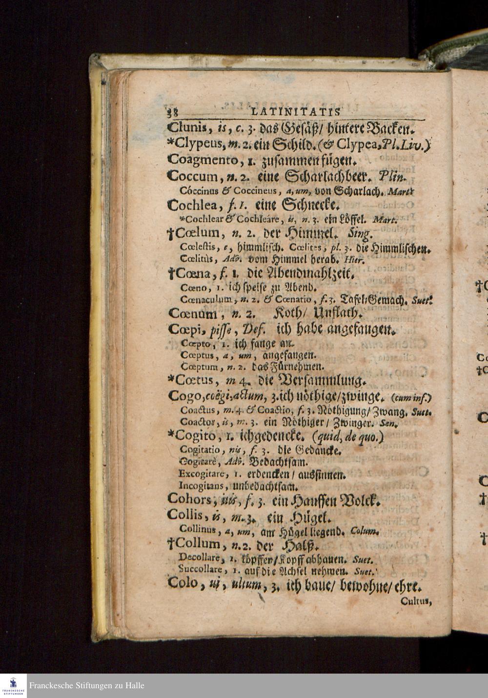 Latinitatis Probatae & Excercitae Liber Memorialis : Natvrali Ordine Dispositvs; Vt sine vlla memoriae defabigatione Notitia Vocabulorum non solum capi facillime, sed feliciter etiam repeti ac conservari possit ... / ... in Vsvm Scholarvm Episcopatvs Mersebvrgensis Conscriptus à Christoph. Cellario, Gymnasii Merseb. Rectore.