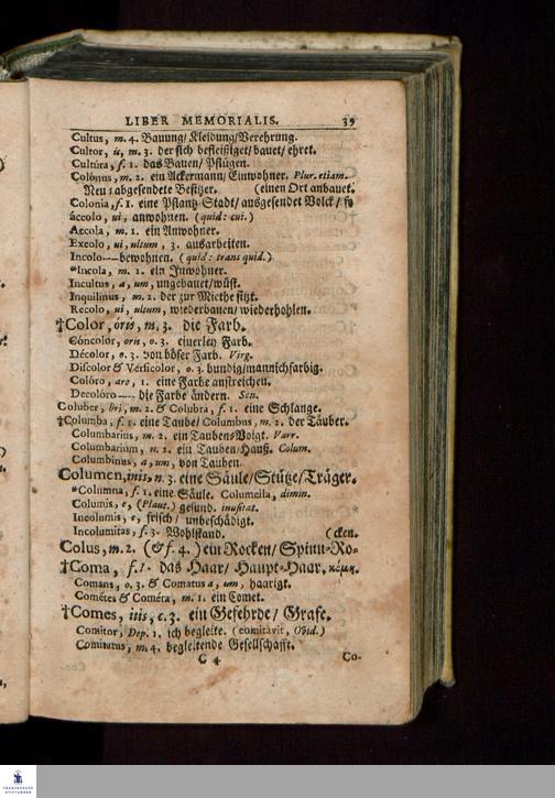 Latinitatis Probatae & Excercitae Liber Memorialis : Natvrali Ordine Dispositvs; Vt sine vlla memoriae defabigatione Notitia Vocabulorum non solum capi facillime, sed feliciter etiam repeti ac conservari possit ... / ... in Vsvm Scholarvm Episcopatvs Mersebvrgensis Conscriptus à Christoph. Cellario, Gymnasii Merseb. Rectore.