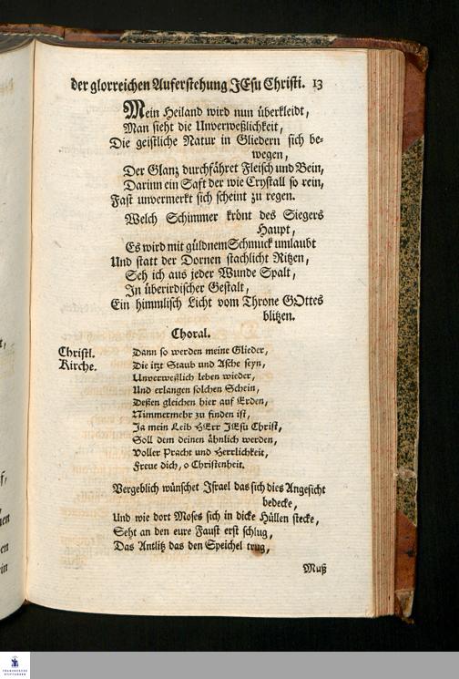 Die Geschichte der glorreichen Auferstehung Jesu Christi durch freudige Gesänge in den Hütten der Gerechten : zum erneuerten Andenken des großen Triumphs abgebildet / von Friedrich Samuel Bock, der Gottesgelahrtheit Beflißenen.