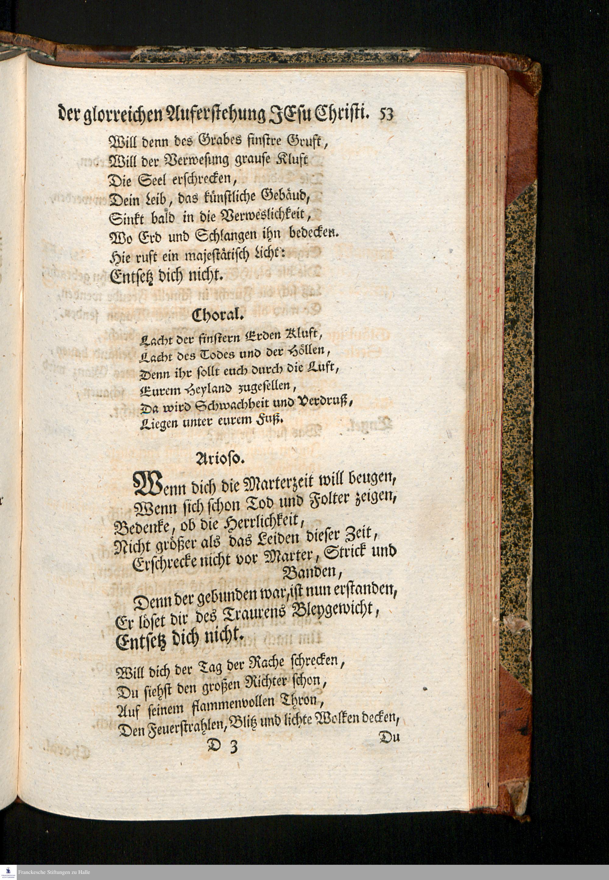 Die Geschichte der glorreichen Auferstehung Jesu Christi durch freudige Gesänge in den Hütten der Gerechten : zum erneuerten Andenken des großen Triumphs abgebildet / von Friedrich Samuel Bock, der Gottesgelahrtheit Beflißenen.