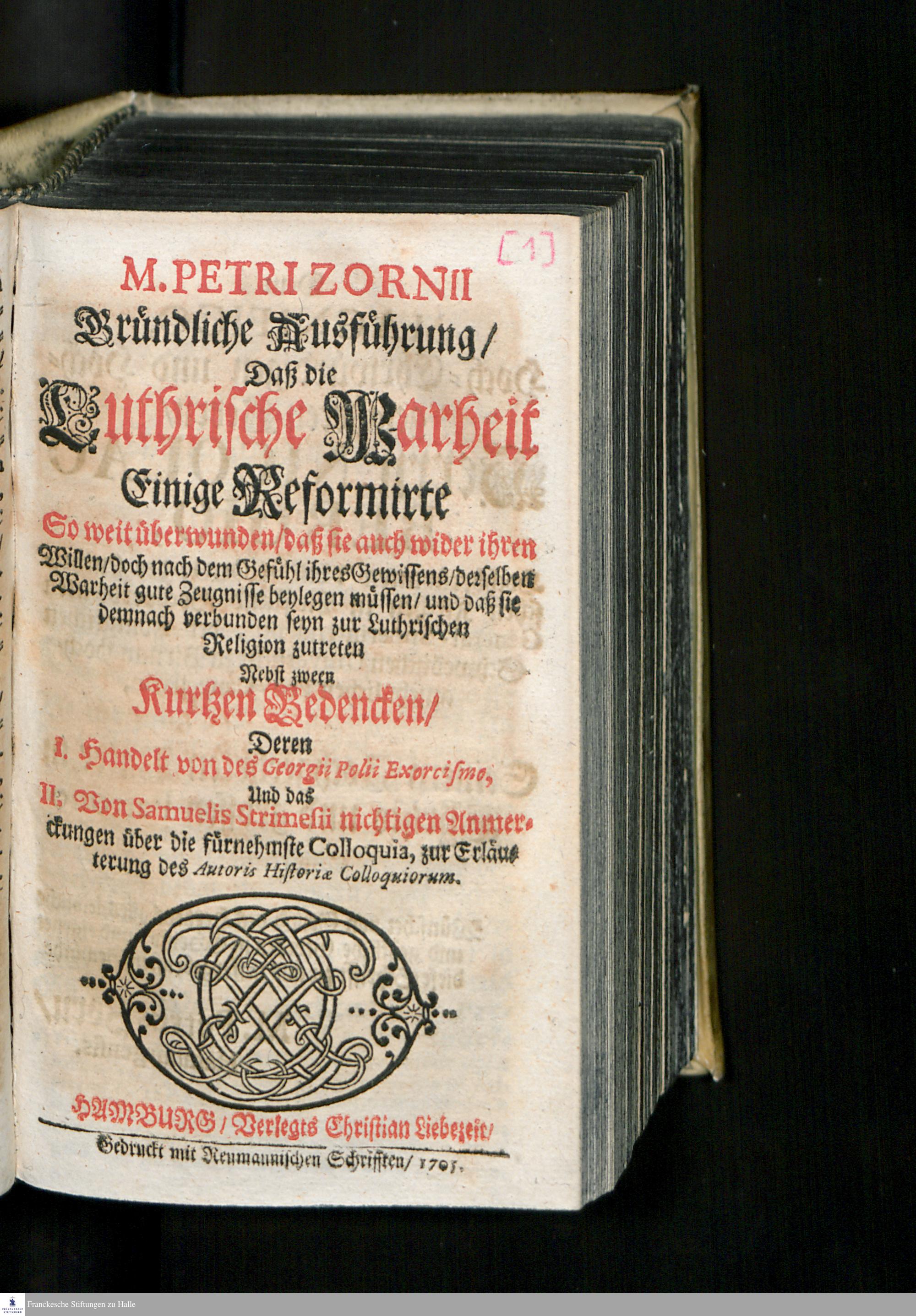 M. Petri Zornii Gründliche Ausführung/ Daß die Luthrische Warheit Einige Reformirte So weit überwunden/ daß sie auch wider ihren Willen/ doch nach dem Gefühl ihre Gewissens/ derselben Warheit gute Zeugnisse beylegen müssen/ und daß sie demnach verbunden seyn zur Luthrischen Religion zutreten : Nebst zween Kurtzen Bedencken/ Deren I. Handelt von des Georgii Polii Exorcismo, Und das II. Von Samuelis Strimesii nichtigen Anmerckungen über die fürnehmste Colloquia, zur Erläuterung des Autoris Historiæ Colloquiorum