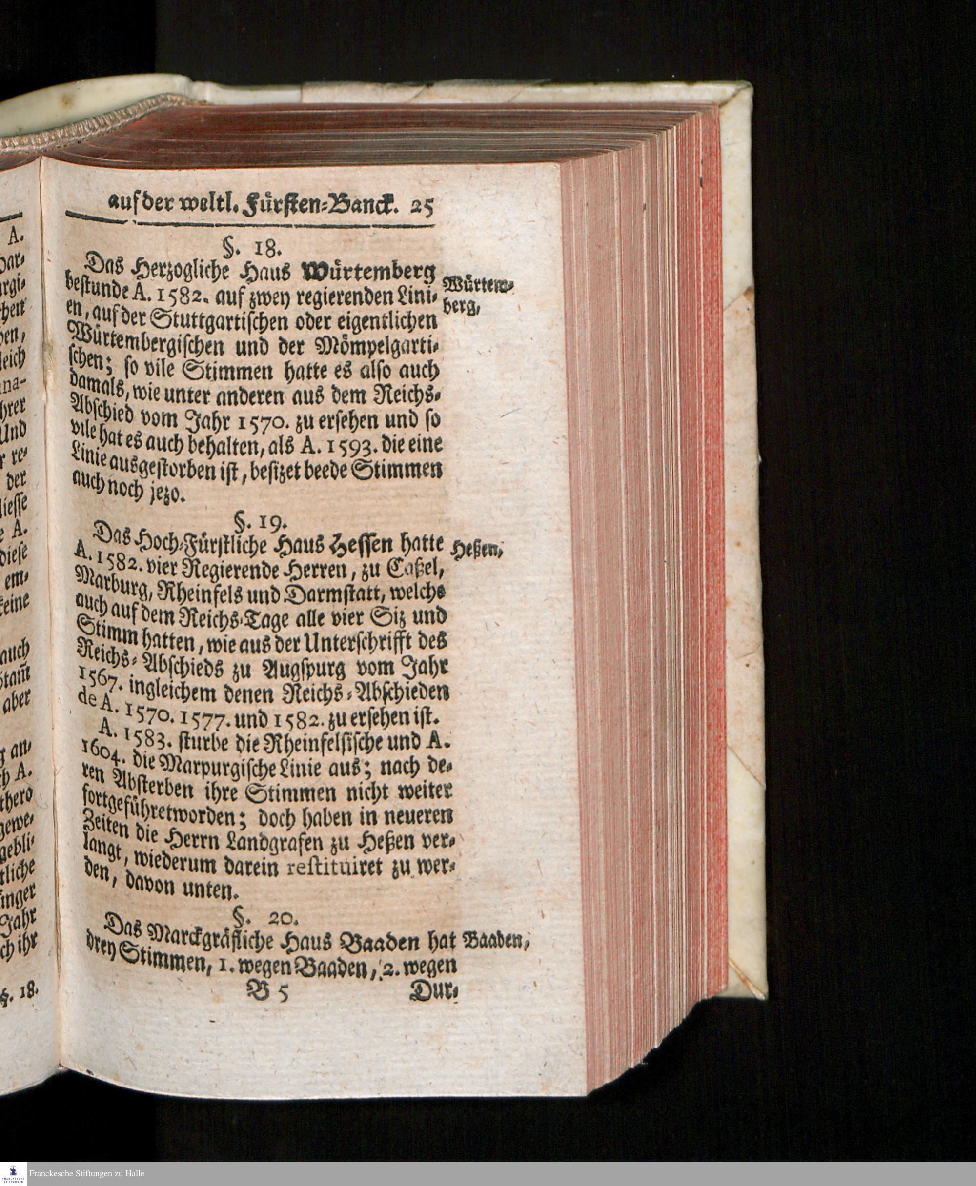 I. Der Ursprung und Grund derer jetzigen Stimmen auf des Teutschen Reichs-Fürsten-Raths weltlichen Banck.