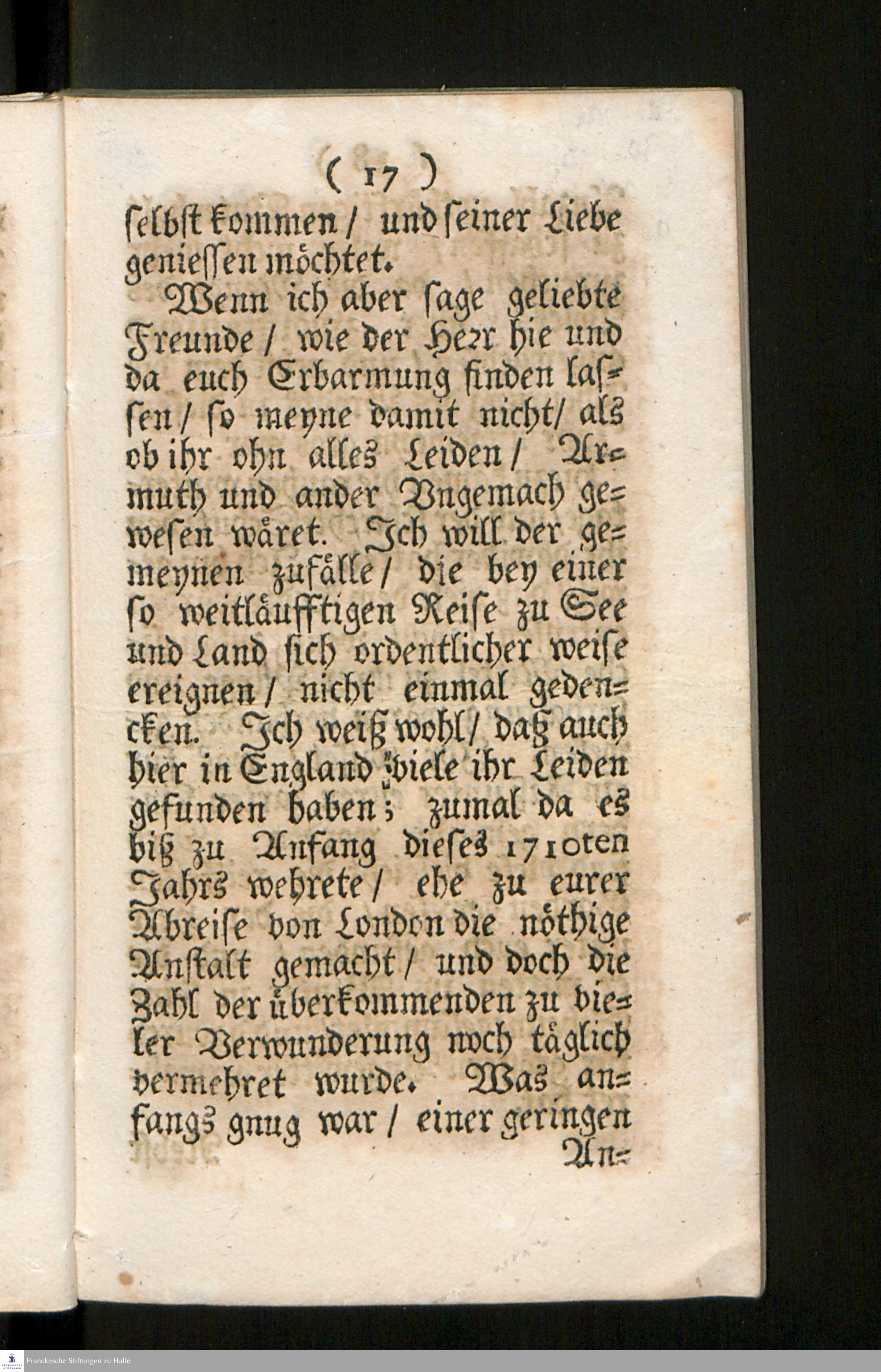 Ermahnungs-Schreiben An Die zerstreueten Pfältzer und übrige Teutsche, in Pensylvanien, New-York, Carolina, und andern Americanischen Provincien / In Wohlmeynender Liebe ertheilet/ Von Anton Wilhelm Böhmen, Predigern in Londen