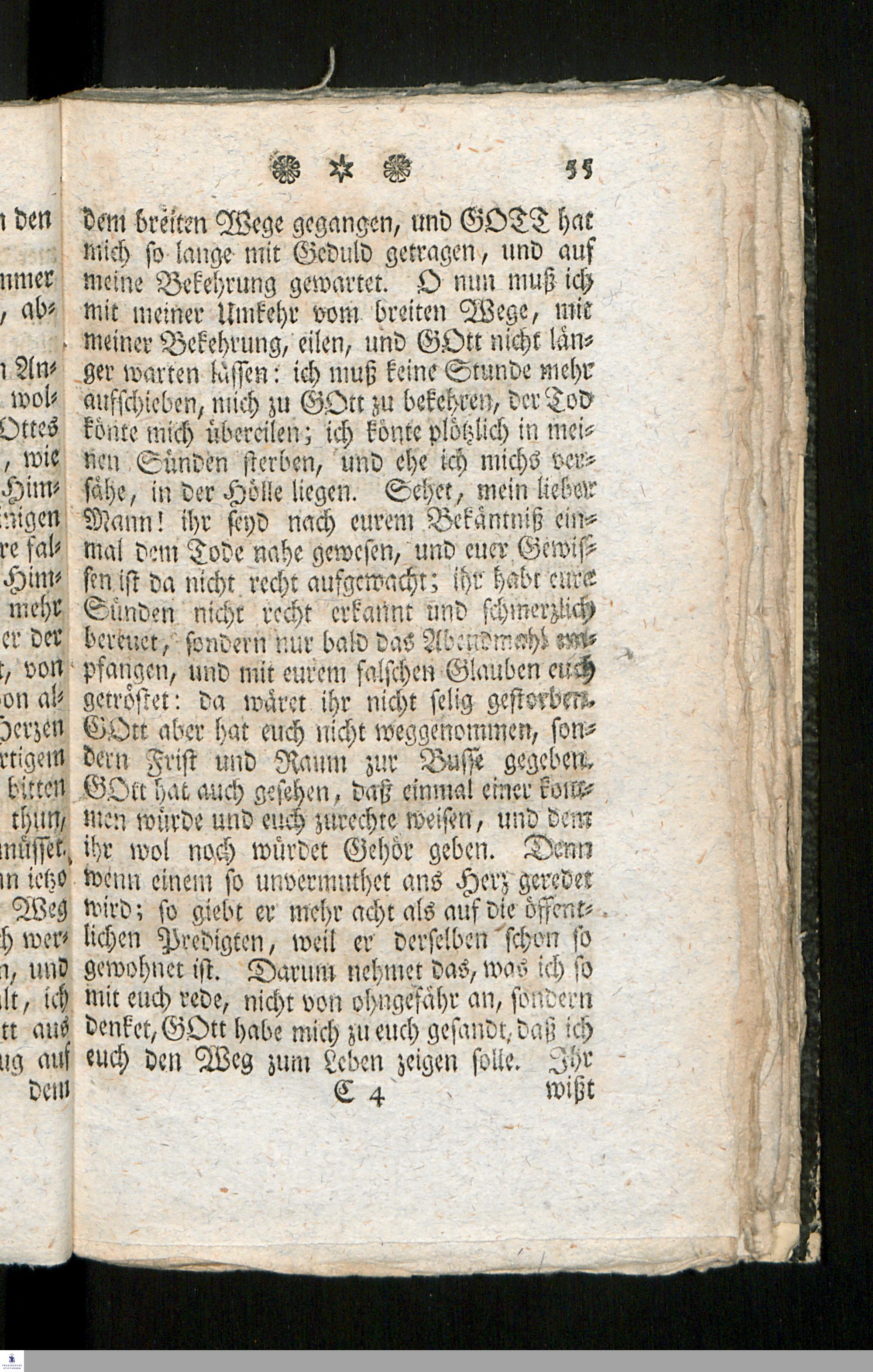 Ein Reise-Gespräch von dem Wege zur Seligkeit, zwischen einem Reisenden und Wegweiser vor mehrern Jahren gehalten : nun aber weiter ausgeführet, und zur allgemeinen Aufweckung der Sicheren, sonderlich zum Unterricht der unwissenden Land- und Fuhrleute : nebst einem Anhange von erbaulichen Gedanken der Landleute / in Druck gegeben von C. H. v. B