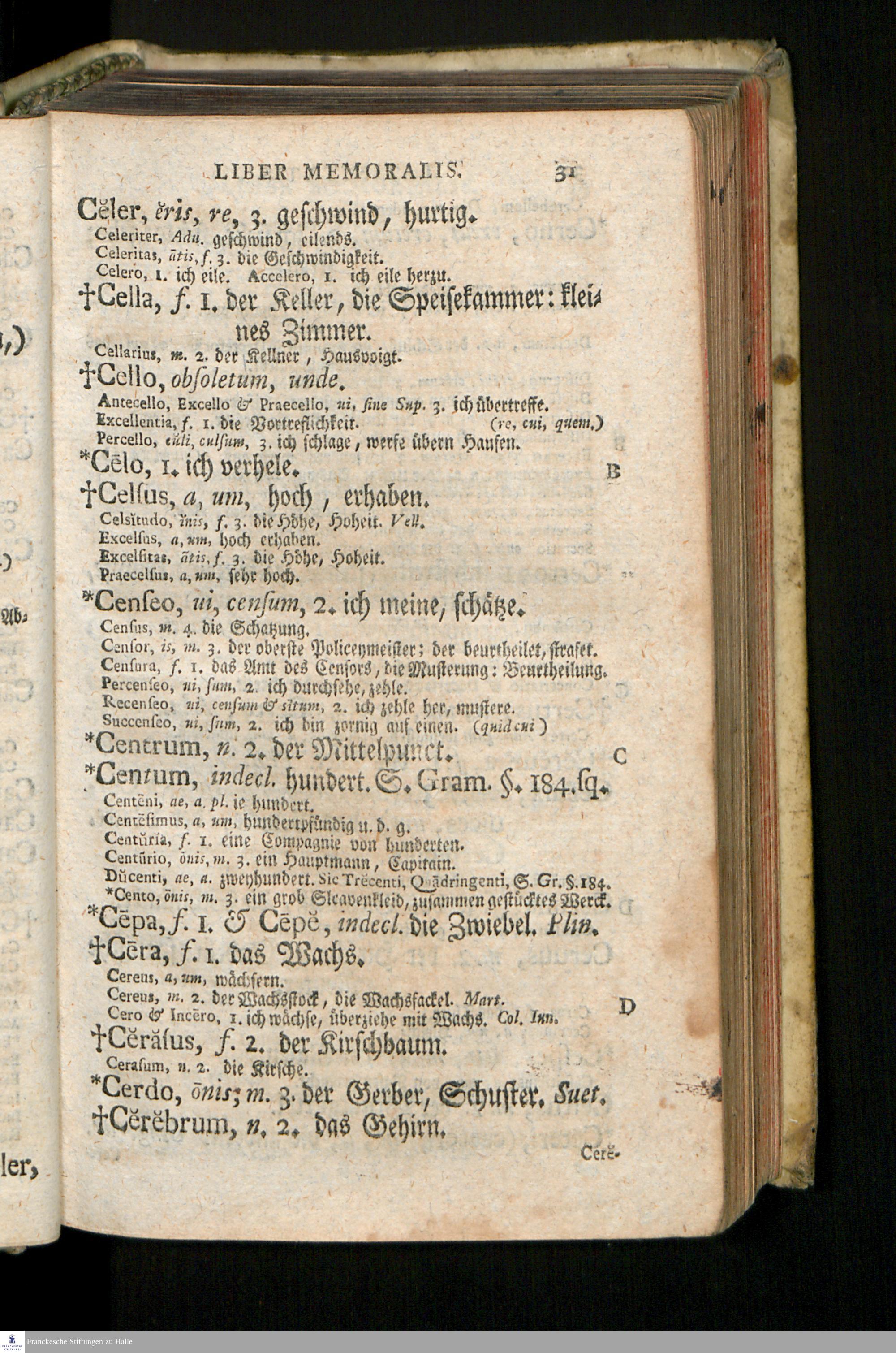 Latinitatis Probatae & Exercitae Liber Memorialis, Natvrali Ordine Dispositvs : Vt Sine Vlla Memoriae Defatigatione Notitia Vocabvlorvm Non Solvm Capi Facillime, Sed Feliciter Etiam Repeti Ac Conservari Possit, Serenissimis Avspiciis Et Sacro Mandato In Vsvm Scholarvm Episcopatvs Mersebvrgensis Et Scholae Hannoveranae Conscriptvs / A Christophoro Cellario, Gymnasii Merseb. Rectore