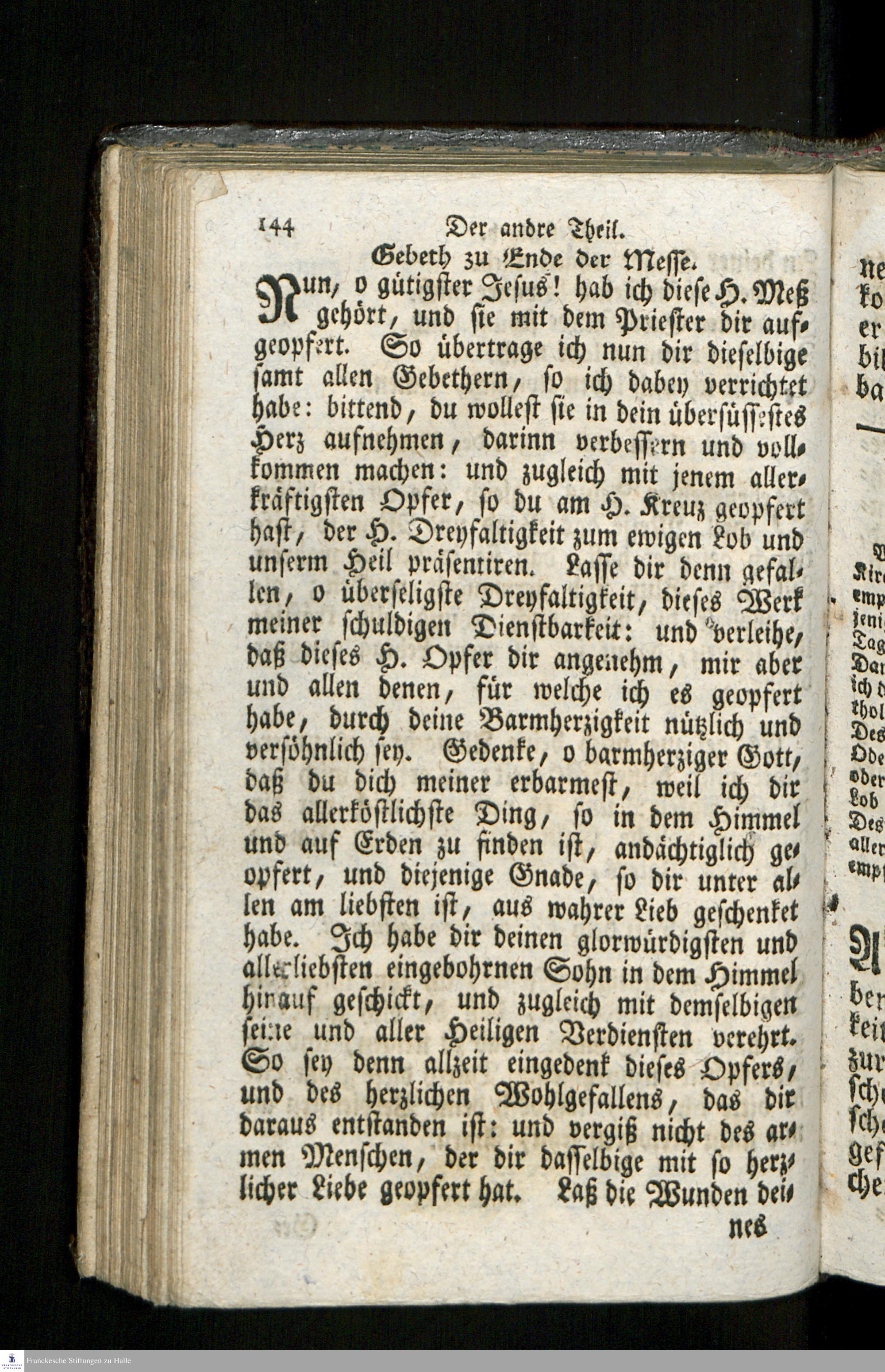 Der Große Baum-Garten : in großem Druck: Darinn überaus kräftige und anmüthige Morgens- und Abends- Meß- Vesper- Beicht- und Kommunion-Gebether, Wie auch zum Hochwürdigsten Sakrament des Altars, Und der Allerheiligsten Dreyfaltigkeit ... Zu allen Groß-Festen und Wallfahrten ... Für geist- u. weltliche Personen, wes Stands und Condition sie sind ... : Mit neuen Kupfern zu Anfang eines jeden Theils geziert / Durch P. Martinus von Cochem, Capuciner-Ordens, der Rheinischen Provinz Predigern