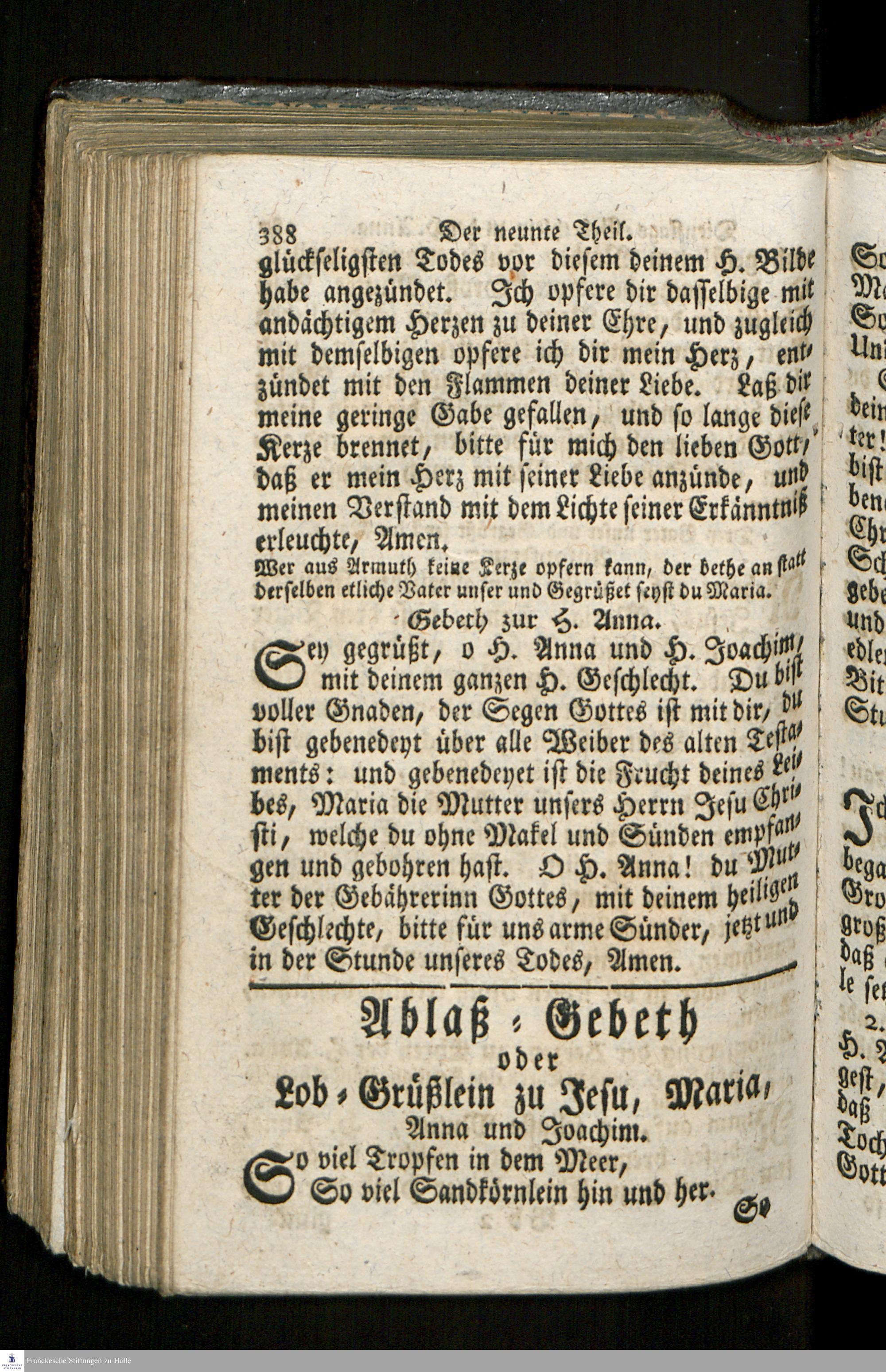 Der Große Baum-Garten : in großem Druck: Darinn überaus kräftige und anmüthige Morgens- und Abends- Meß- Vesper- Beicht- und Kommunion-Gebether, Wie auch zum Hochwürdigsten Sakrament des Altars, Und der Allerheiligsten Dreyfaltigkeit ... Zu allen Groß-Festen und Wallfahrten ... Für geist- u. weltliche Personen, wes Stands und Condition sie sind ... : Mit neuen Kupfern zu Anfang eines jeden Theils geziert / Durch P. Martinus von Cochem, Capuciner-Ordens, der Rheinischen Provinz Predigern