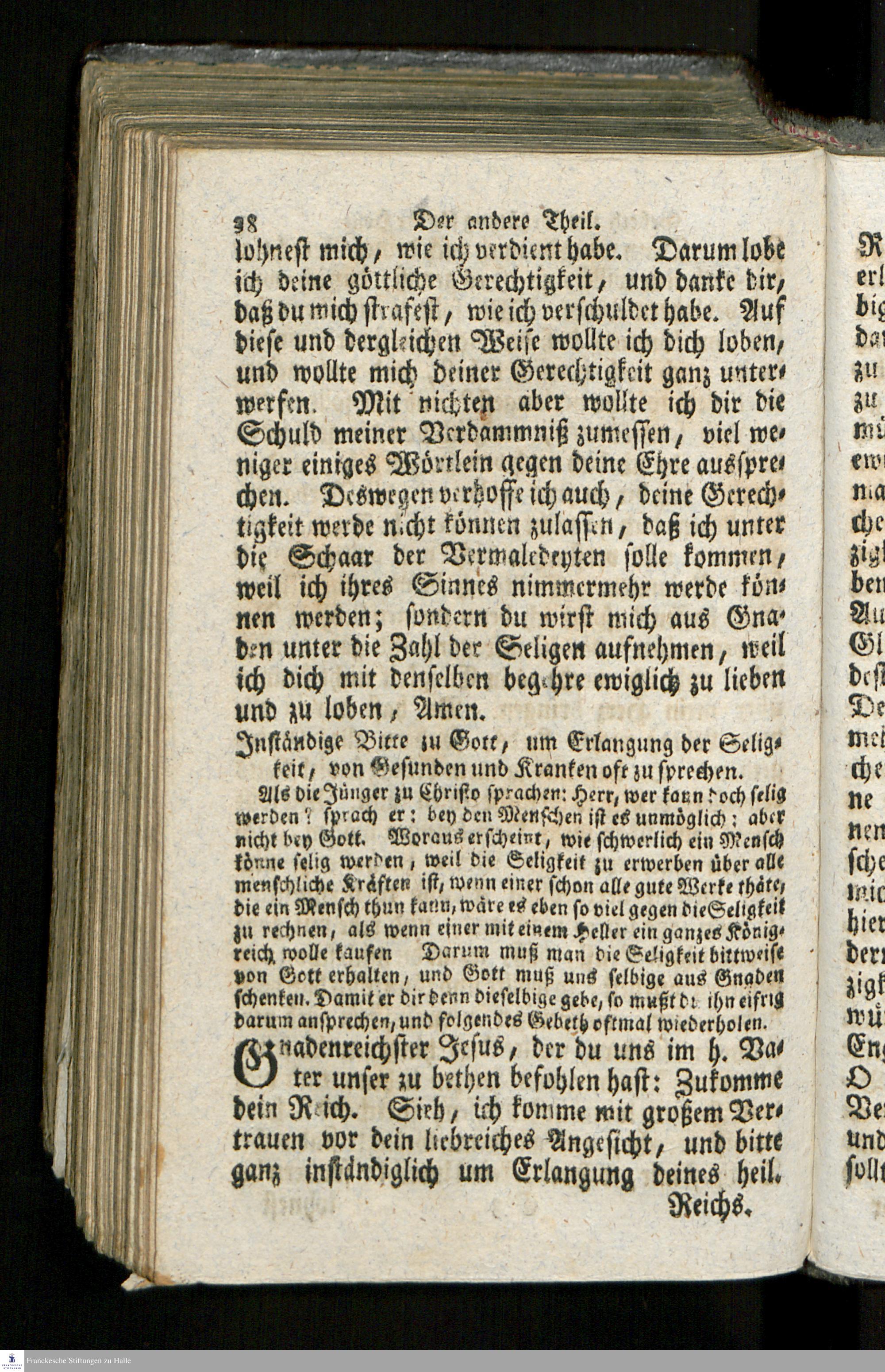 Der Große Baum-Garten : in großem Druck: Darinn überaus kräftige und anmüthige Morgens- und Abends- Meß- Vesper- Beicht- und Kommunion-Gebether, Wie auch zum Hochwürdigsten Sakrament des Altars, Und der Allerheiligsten Dreyfaltigkeit ... Zu allen Groß-Festen und Wallfahrten ... Für geist- u. weltliche Personen, wes Stands und Condition sie sind ... : Mit neuen Kupfern zu Anfang eines jeden Theils geziert / Durch P. Martinus von Cochem, Capuciner-Ordens, der Rheinischen Provinz Predigern
