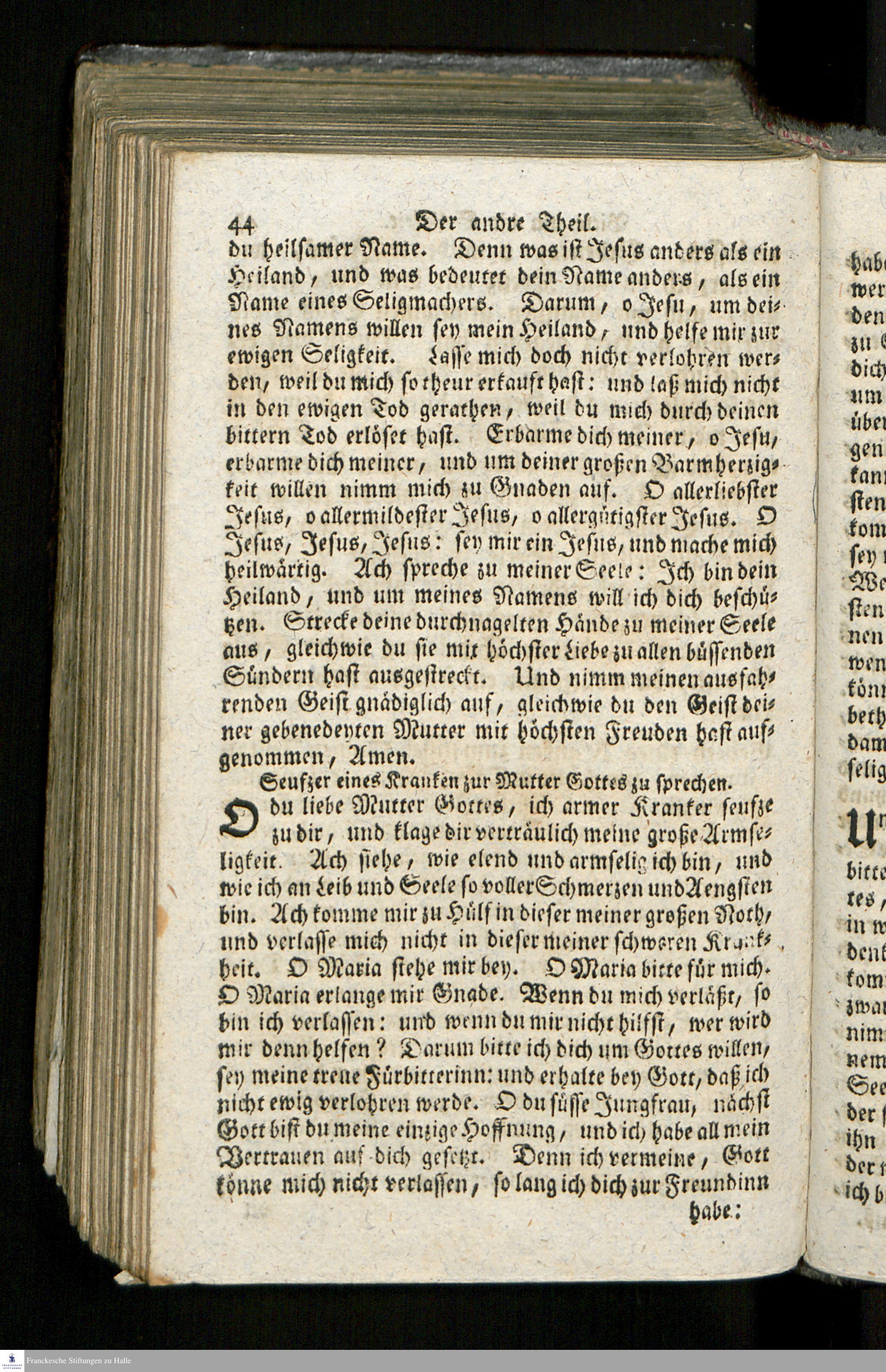 Der Große Baum-Garten : in großem Druck: Darinn überaus kräftige und anmüthige Morgens- und Abends- Meß- Vesper- Beicht- und Kommunion-Gebether, Wie auch zum Hochwürdigsten Sakrament des Altars, Und der Allerheiligsten Dreyfaltigkeit ... Zu allen Groß-Festen und Wallfahrten ... Für geist- u. weltliche Personen, wes Stands und Condition sie sind ... : Mit neuen Kupfern zu Anfang eines jeden Theils geziert / Durch P. Martinus von Cochem, Capuciner-Ordens, der Rheinischen Provinz Predigern