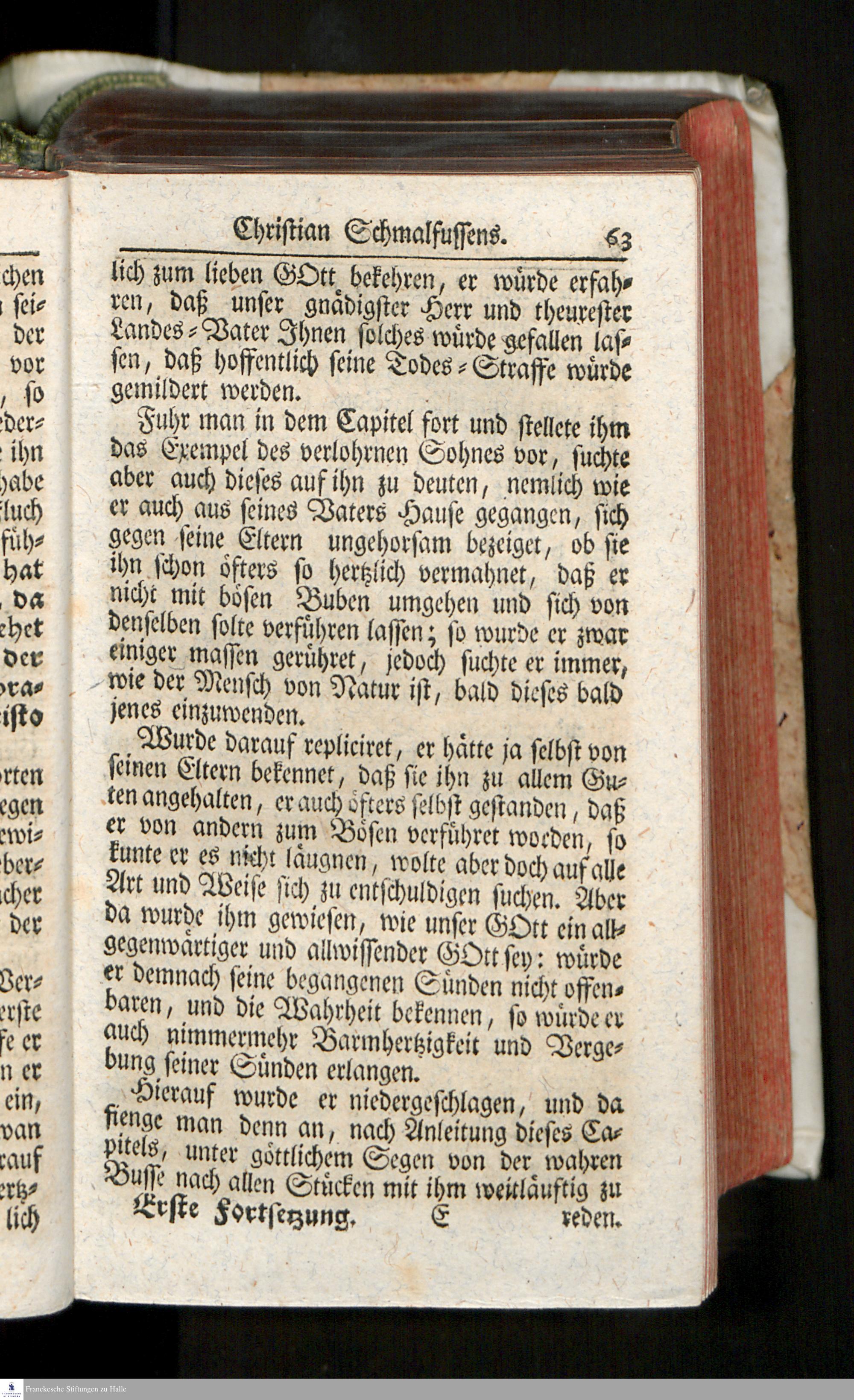 Erste Fortsetzung der seligen Lezten Stunden Einiger dem zeitlichen Tode übergebener Uebelthäter / Auf vieler, auch an entlegenen Orten, geschehenen Nachfrage und inständiges Verlangen gesammlet und ans Licht gegeben. [Johann Jakob Moser]