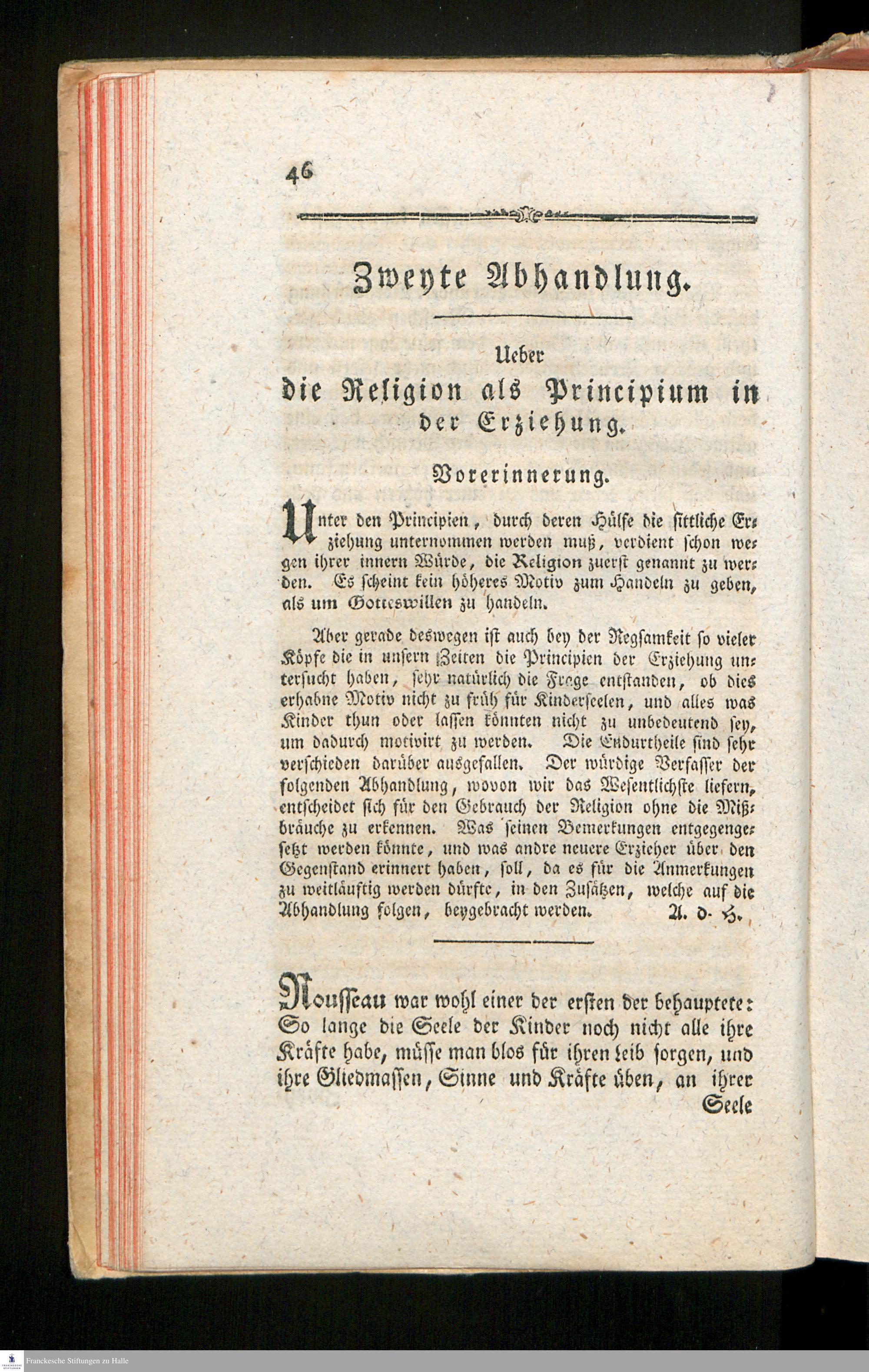 Zweyte Abhandlung. Ueber die Religion als Principium in der Erziehung.