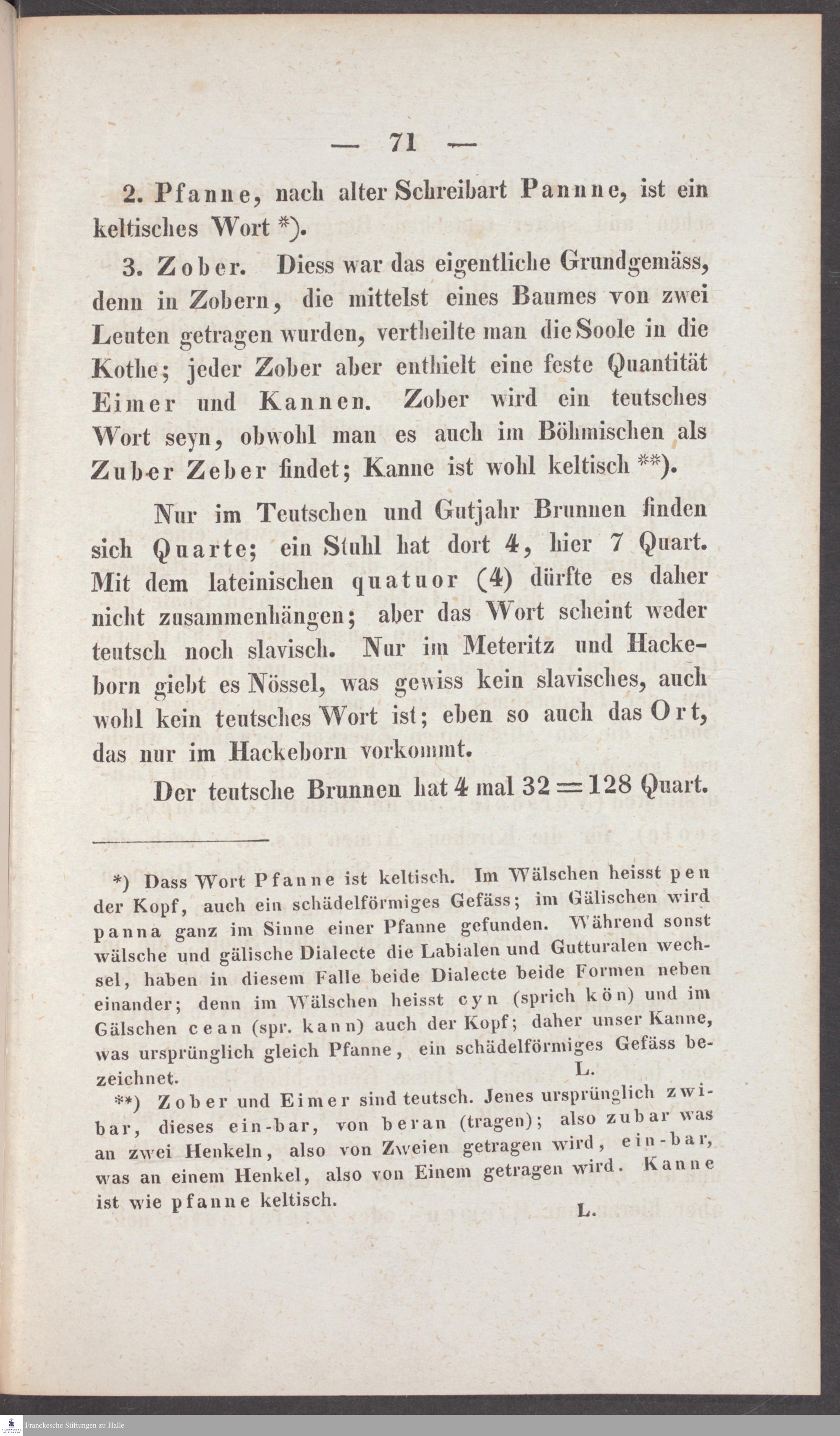 Ueber die Halloren, als eine wahrscheinlich keltische Colonie, den Ursprung des Halleschen Salzwerkes und dessen technische Sprache : Ein Versuch / von Ch. Keferstein